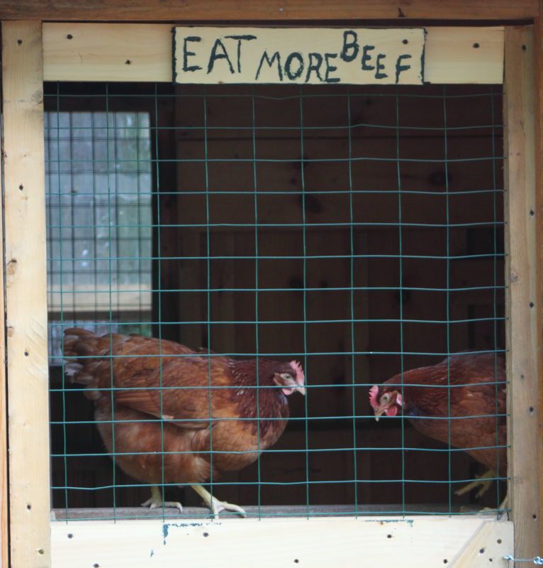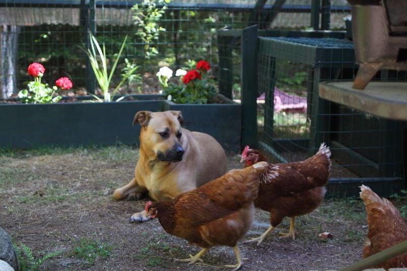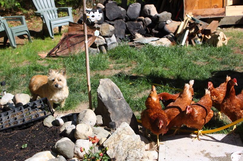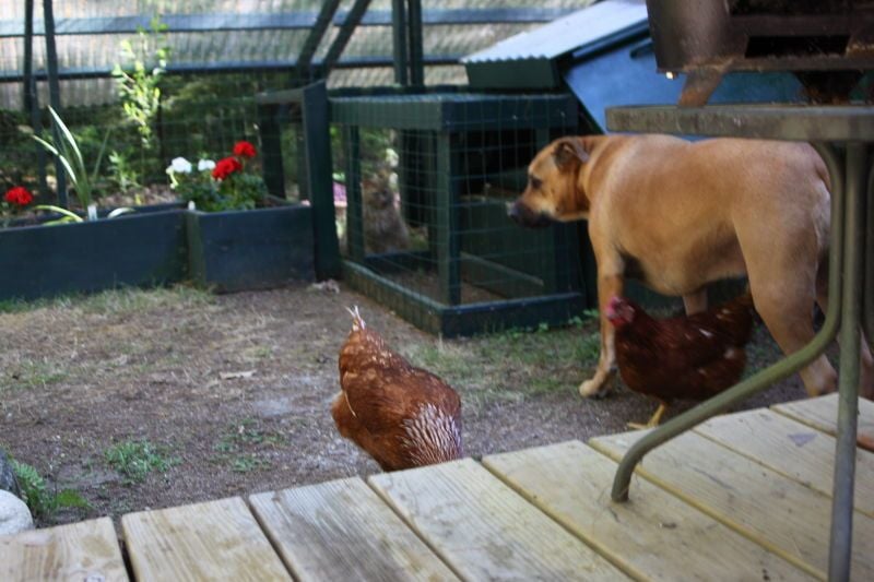 she doesn't like the chickens but tolerates them, as they drop stinky stuff on her patio,
