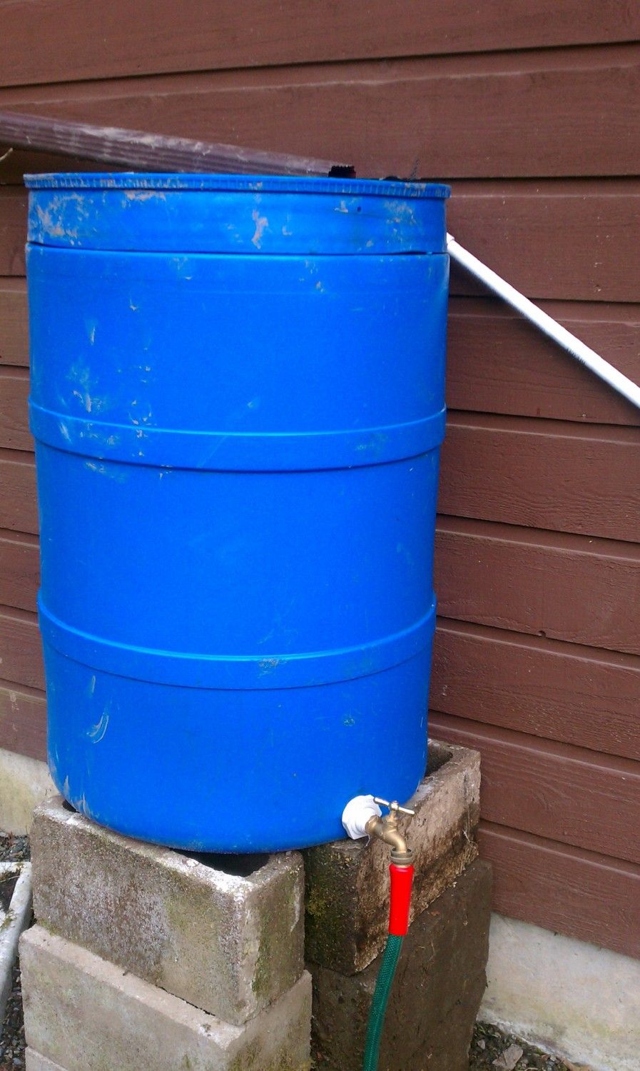 Here is our rain water set-up. I'm in Washington - so we get a lot of rain and I use this for my garden too - so we are always emptying and refilling. Its set-up next to the garage and then a hose runs all the way to the barn. Not sure how long the hose is ... but it's not short. Water is very clean and we have a screen on the opening to keep bugs and gunk out.
