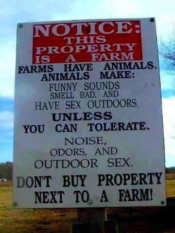 Reminds me of this sign:I'm sorry about the grouchy neighbor. Having a good neighbor is being a good neighbor. Our neighbors like to smother us. They do absolutely nothing. Both retired. They sit on the front porch all day. I come home from work, wave on my way by. they wave. I pull in my driveway, the phone is ringing, It's them and they say, "Whatcha doin?" We built a screened in back porch. They did. Built a flower bed. They did. You walk in their house, it looks like mine. This same woman went into my burning house to rescue my animals. One of my cat's wasn't breathing and she gave him mouth to mouth and revived him. She took in my 9 cats, with her 9 and kept them 2 months until we rebuilt. She told us that they don't mind the chickens roaming over in their backyard as both our yards are huge and connect. I keep them in eggs as a compensation, sort of. They both say over and over that they don't mind. BUT.......