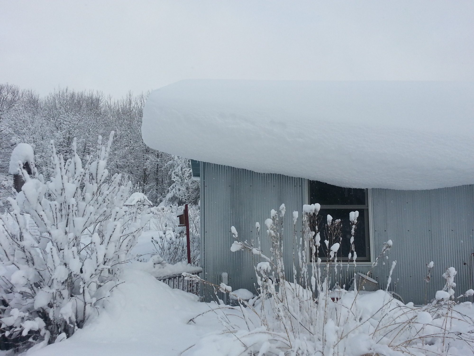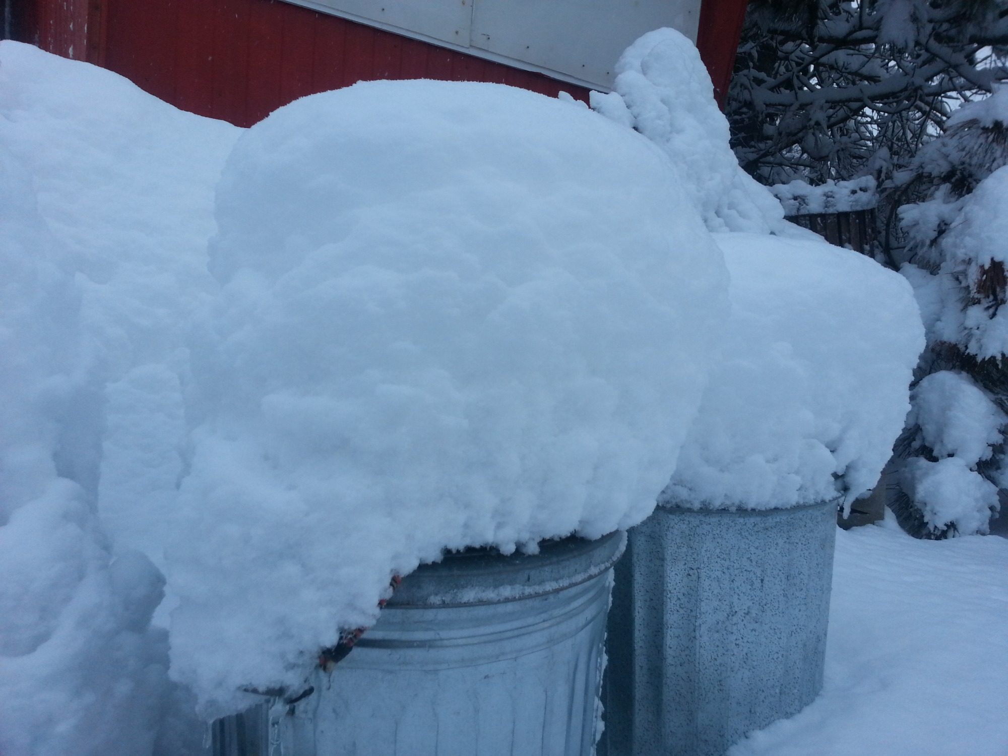 early morning pic of snow on top of feed bins - you can guess that the girls decided to stay inside today.