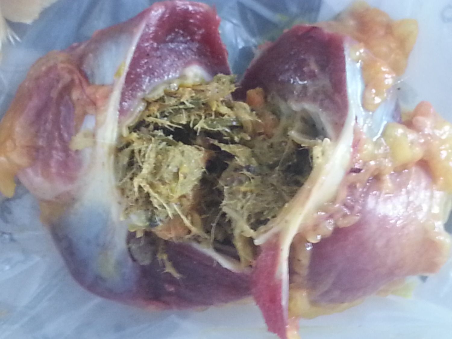 Her gizzard was solid packed with very tough bristly fiber. Does that mean it was blocked? I picked at it before the pic below.