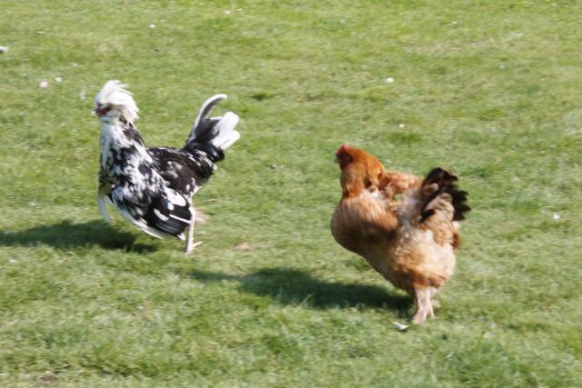 I have to keep the HRIR cockerels much longer than I normally would with other faster maturing breeds. Only two cock birds will be kept out of the twenty two I have now for breeding. I don't want to process the extras until they are grown out and I can clearly judge which are the closest to standard. Silkies are also slow to mature but are easier to raise together. Keeping the peace will be a challenge for the next nine months.