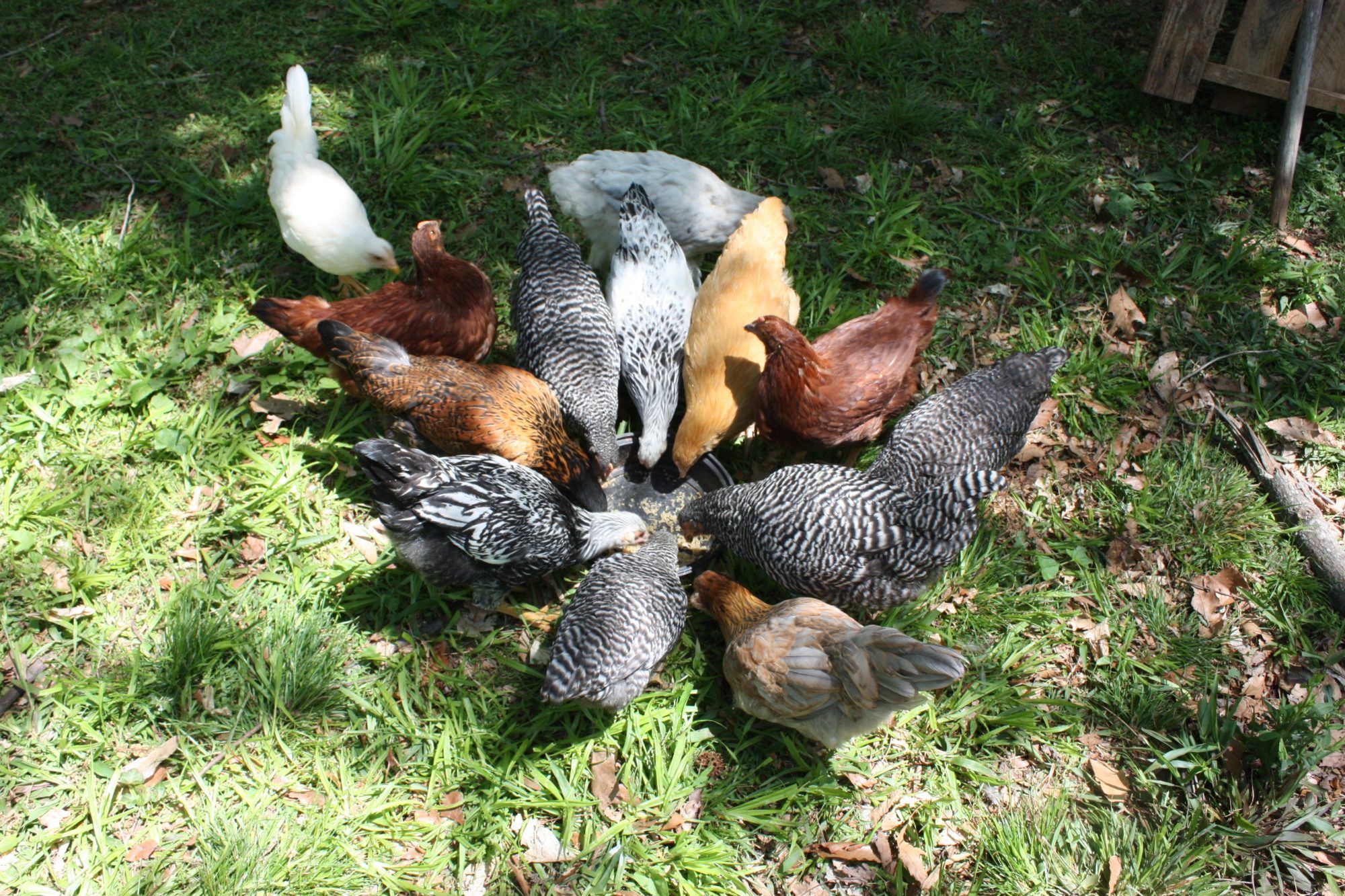 ..and here are my chicks, they are 11 weeks now and they're enjoying some leftovers in the pic. I have more day old chicks coming in a couple of days.