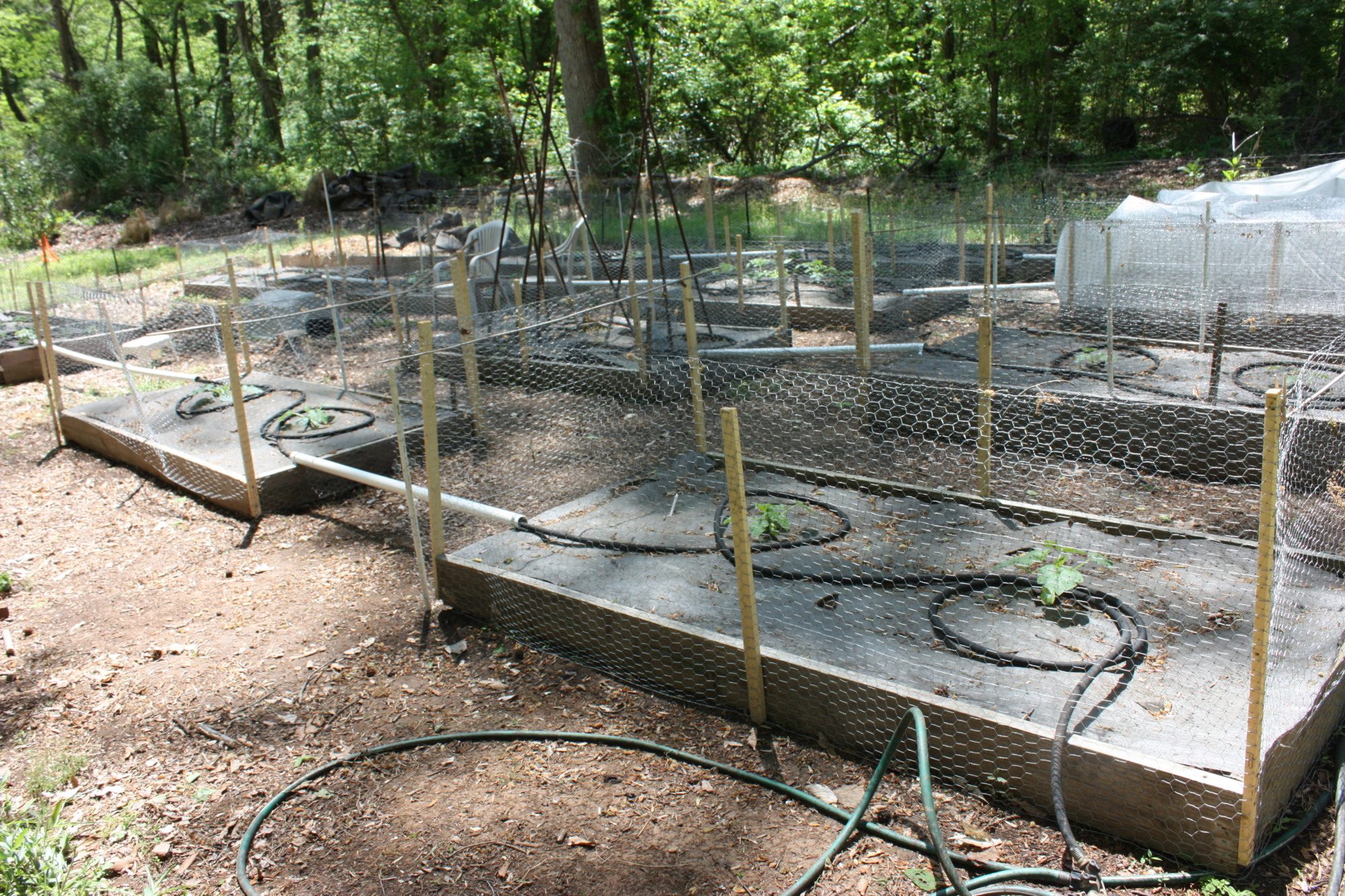 The pvc between the beds is to bring the drip hose between the beds without losing water. The chicks love to come to any area where one of the hoses links, they get so excited.