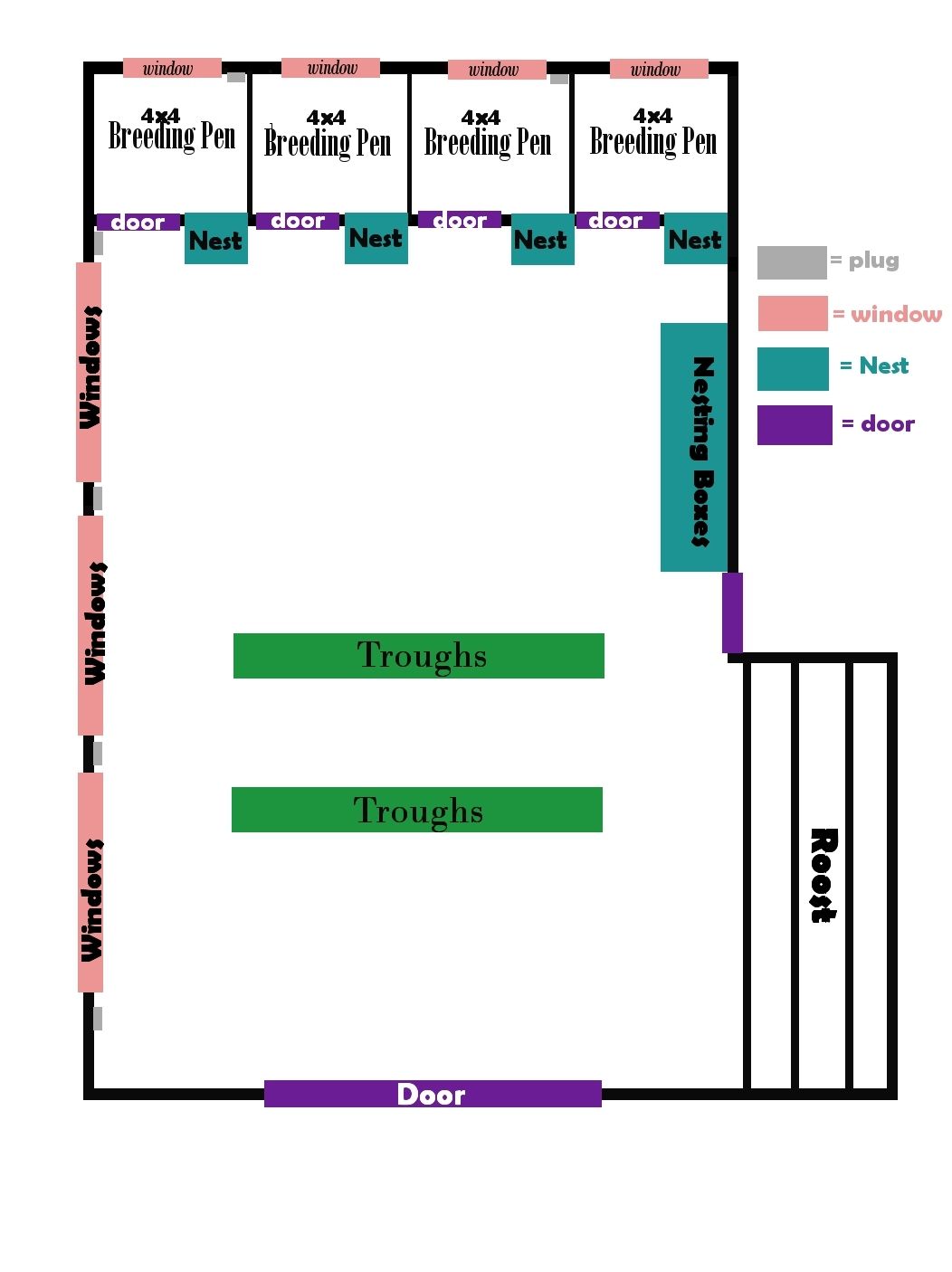 I'm not sure how well you guys can see this floor plan I made of just the chicken part of the barn. The troughs will be free standing. I can move them in and out as needed (ie probably only in there in the winter)