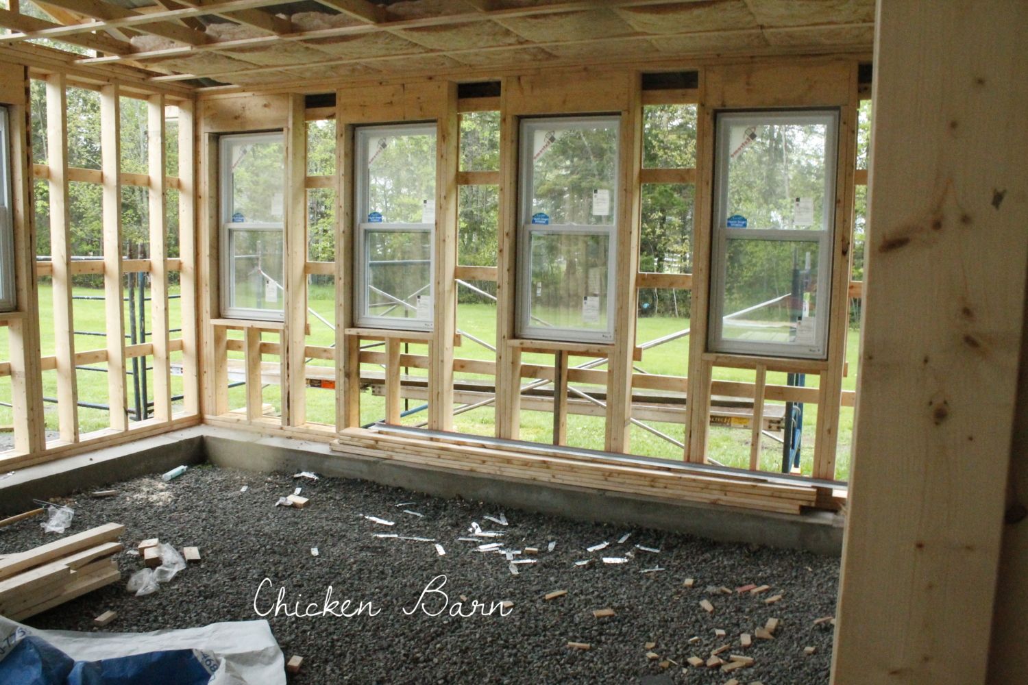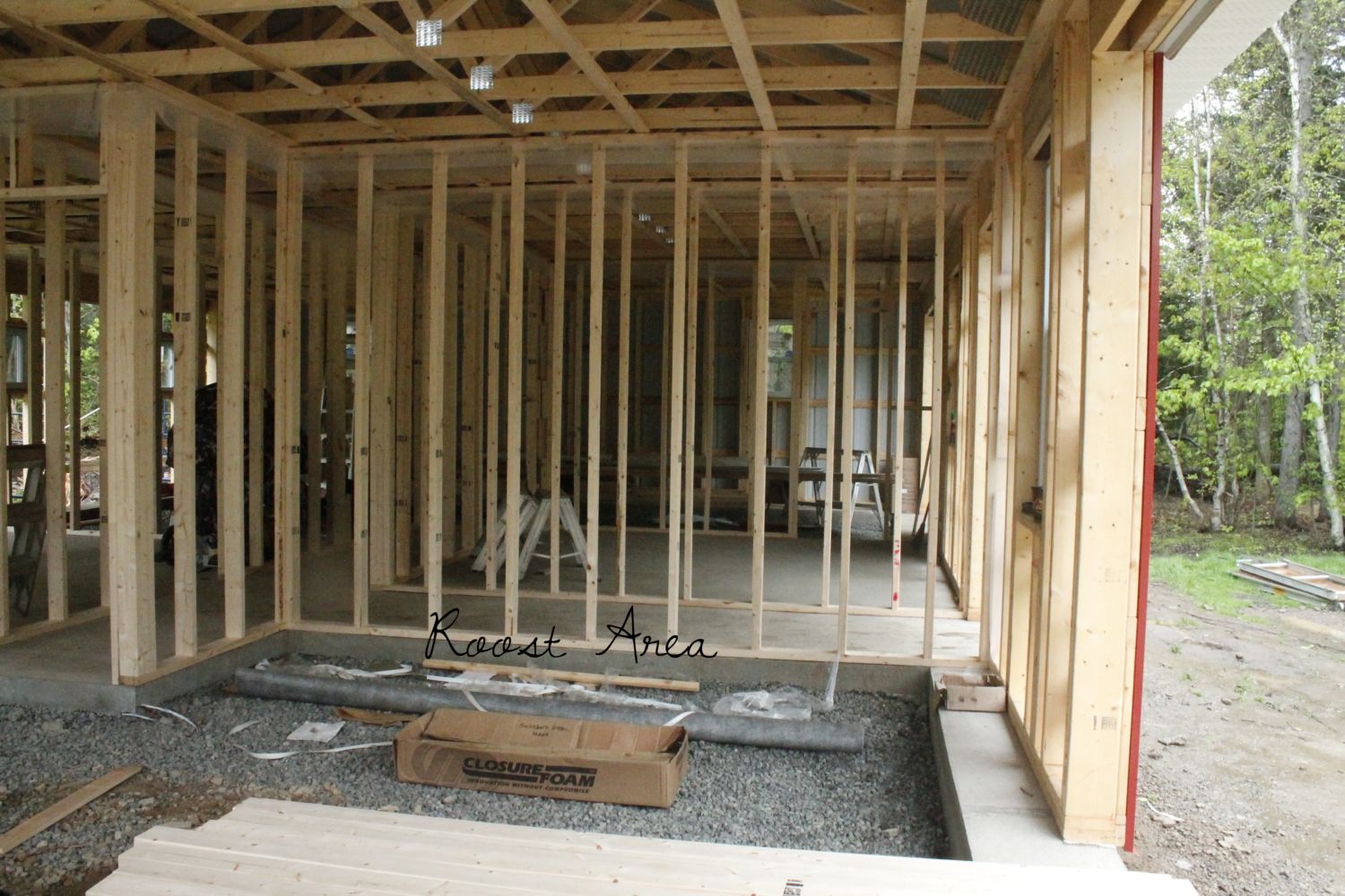 They estimated at the end of May, but I think maybe an extra week to get the pens in and everything. There is only 3 guys doing it. They are doing it really quickly though. This is their second week from the slab up. Took them 2 days to do the roof, and a day to do the back siding and some trim work. This week was a 4 day week as well.I agree. I think you can do deep litter anywhere with a little creativity. If I had a cement floor, I'd do the same as I do on my vinyl floor. I go to the garden and dig up a wheelbarrow full of dirt. (The amount, of course, appropriate for the size of your building). I put a layer of that dirt down on the floor so that there is some live material in there. It will also have worms, etc. that they'll scratch around for.