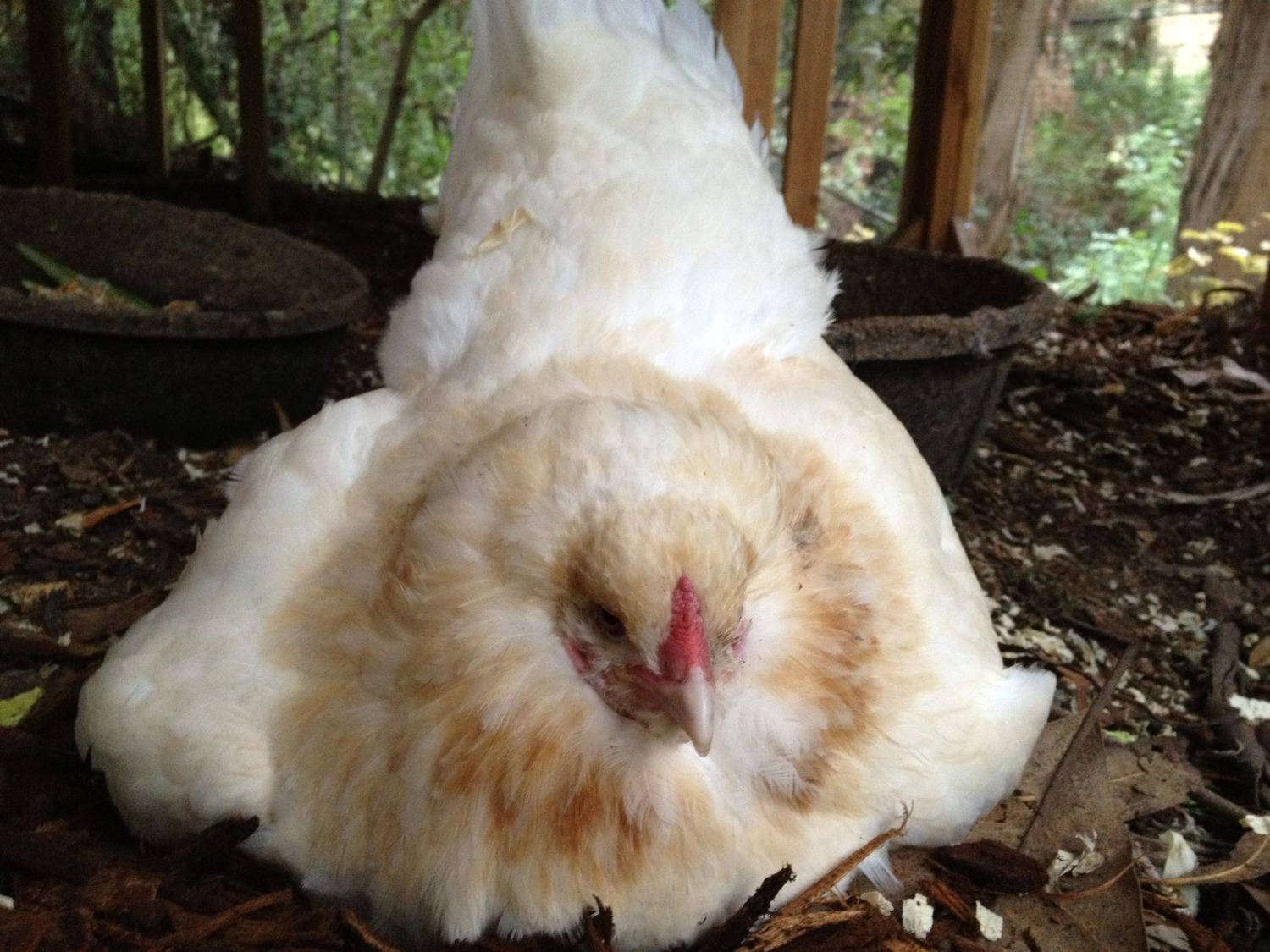 So I kicked my broody Gooshie out of the nest this morning .... She is my ameraucanas that was running around clucking & fighting for days before she went broody .... Well she hasn't left the nest since so today I booted her .... She didn't care .... she sat in the run all puff up and laughed at me. I finally got her to move when I put some mealworms by her