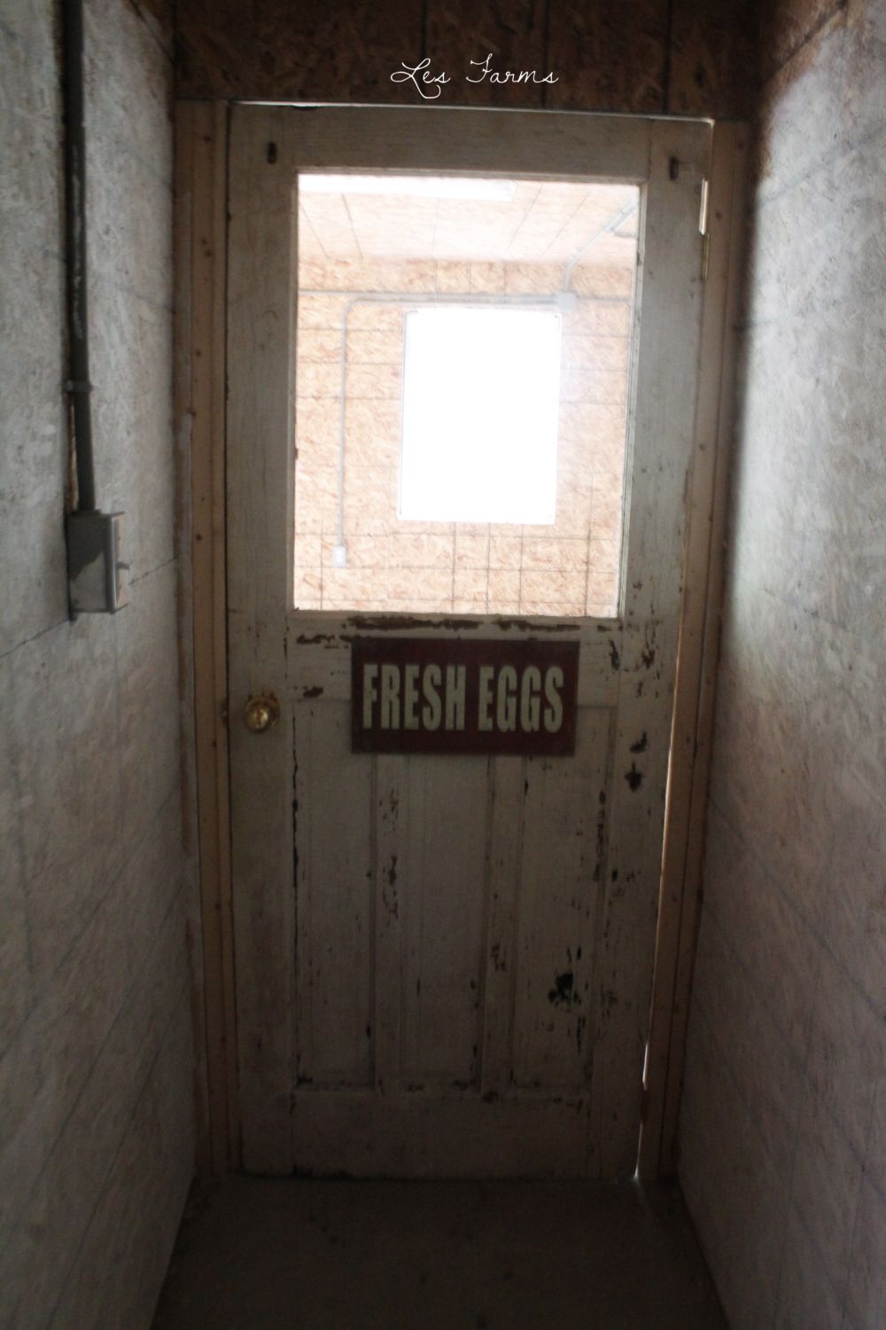 Door to chicken room. It was recycled. I love it. Especially that you can see into the room from the hallway.