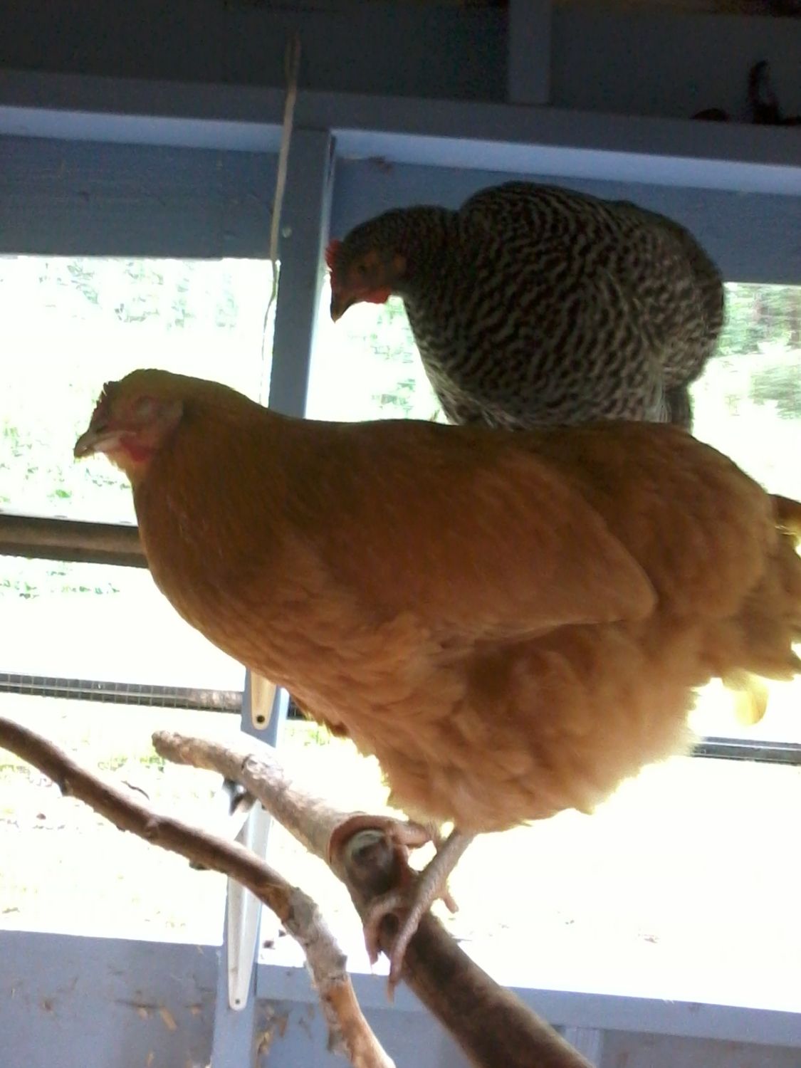Daisy -WR, the 8 week old up on the top roost that she never was allowed to go to before.
