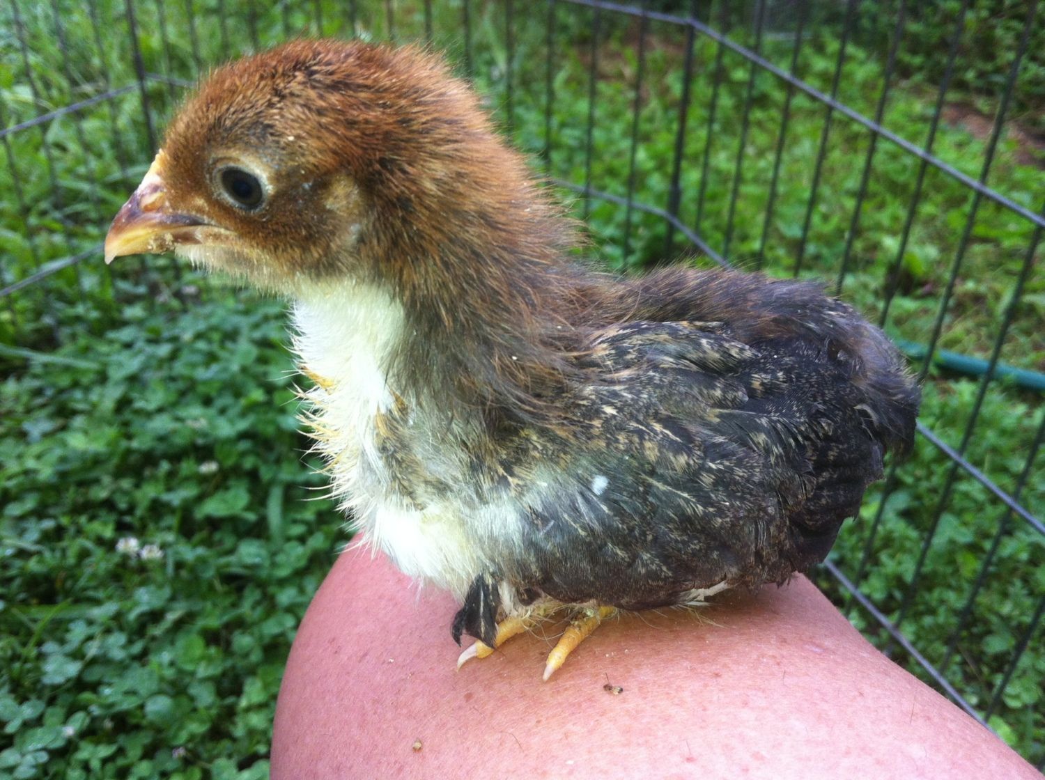 I'm thinking integration will be pretty easy this time since they are feeding along the fence line with the chicks on the other side, and are letting the chicks reach through the netting for bits of grain right next to the hens beaks without snapping at them.