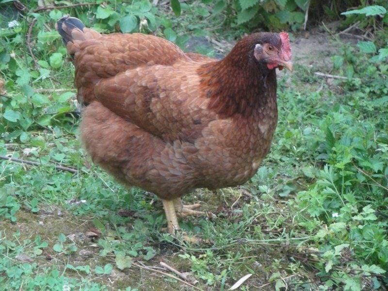The barnyard pullets started to lay. Nice brown eggs. This girl is about six months old.