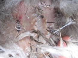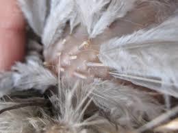 Mites- I looked at that site that was posted and those type of mites were not the type i had. Some mites live inside the hallow shaft of a feather and you never see them. I had only small clusters of eggs and they were hard to see. You can feel them more than see them.