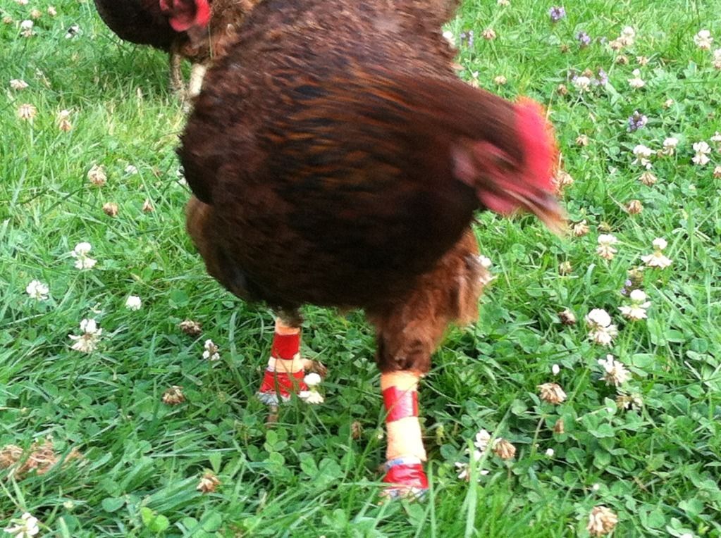 Here she is with her fresh booties & socks. Because of the lifted scales with dirt under them I nustocked up her legs & chose to cover them for tonight. Tomorrow when I do a bandage change I may do it again depending on how the scales look. I really believe that the raised scales were from dirt that got under them from having the bandages on so long.