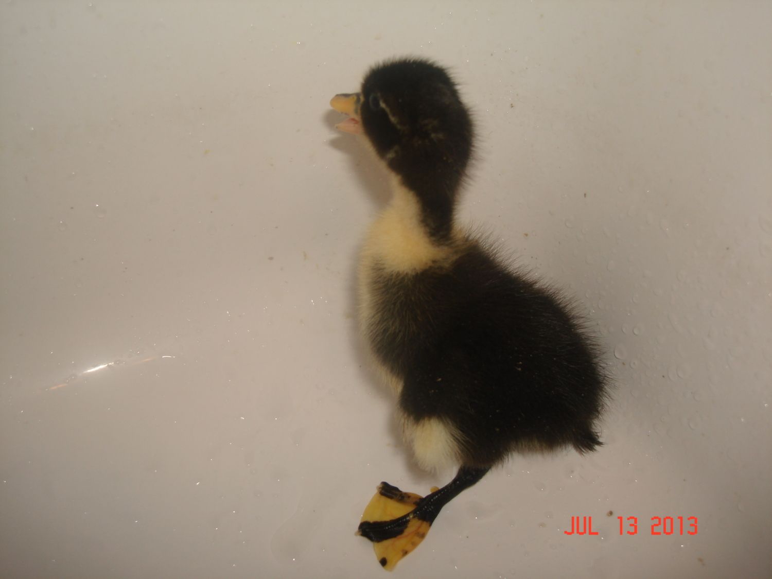 Lucky little mottled houdan. This guy half drowned and survived, Then was found in Henrys mouth with feathers all around him but hes still kicking. Hopefully hell learn to be a bit more cautious... XD. This is the one where I came online here cursing my kiddy pool as another houdan had died. Well he survived against all odds.