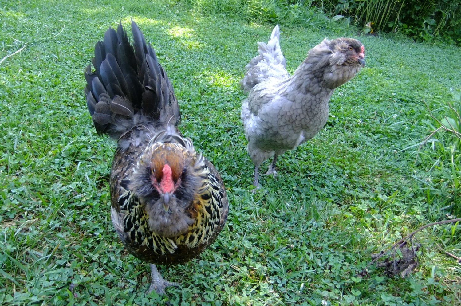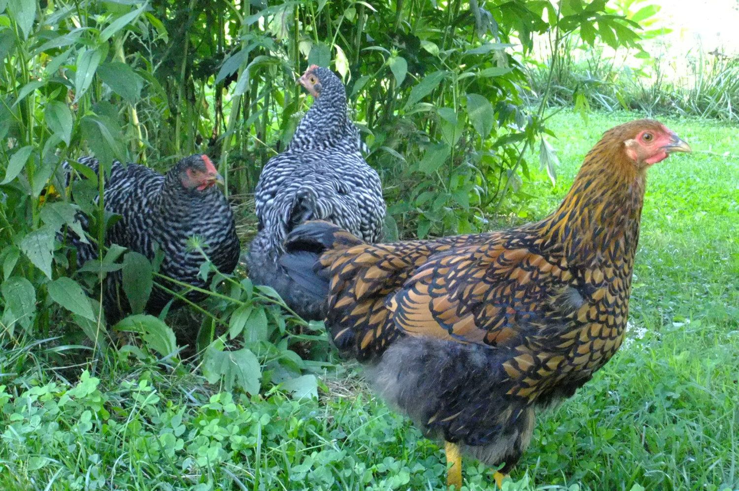 a photo of three littles. this wyandotte is much redder then the other.