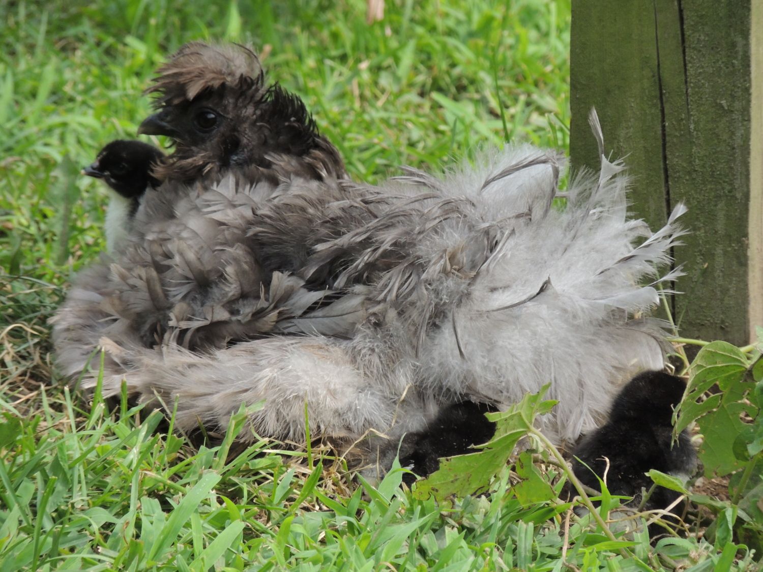 She spent a night on top of the roof. She spent the next 2 nights in the run but locked out of the coop. Conditions improved for a while but this weekend she started flogging them again. I kicked her out of the coop again on Sunday night. She spent the night in the run, while the others were locked up in the coop. Last night she wouldn't go in the run, so she spent the night in a tree, in the rain. I do feel just a little bit bad about that. This morning I let a miserable, wet bird back in the run; so far things are fairly quiet. She's a reliable layer, has (obviously) good survival instincts, and she and the bhrama are actually both pretty good about watching the littles, who are in a separate brooder, when I let them out to run. Trying to decide if the situation may be salvagable of if she's destined for the stew pot once the juniors start laying.![]()