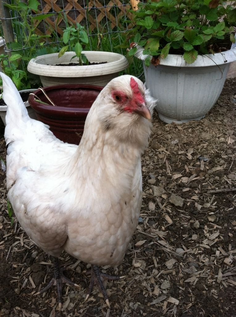 She is my shadow when I walk into the run or coop. She knows the big girls wont go after her when she is near me. And when she is allowed in the veggie garden she knows I will sneak her cherry tomatoes