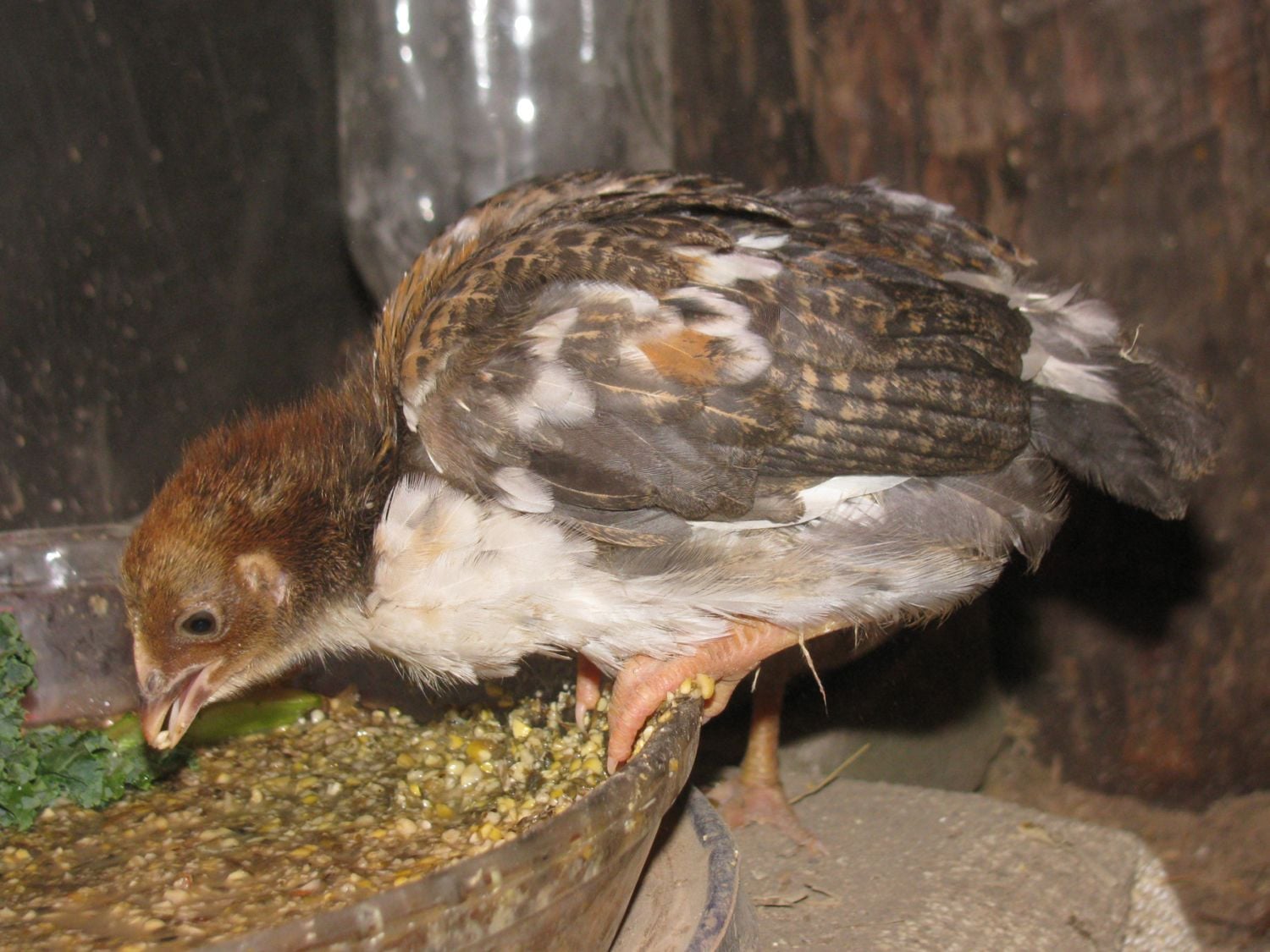When I first made the bases from the dog bowls it was for the chicks so that they had a flat shallow feed pan they could access easily.