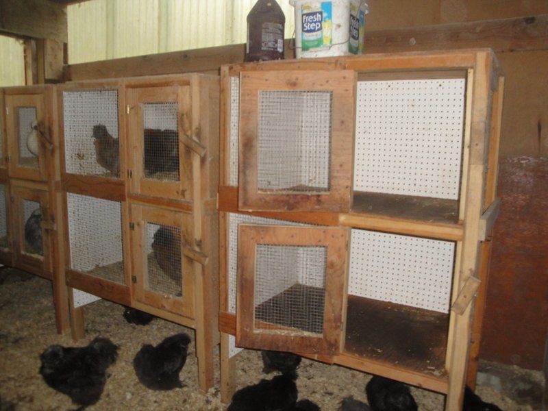 The pop doors on the back of the barn (South side) open up into a large run under the old growth fir trees. I can erect small individual runs for trios in a hurry during the winter. The pop doors on the East end of the barn are the layer pens and they have a separate run that is only closed at night after the hens are locked in the barn for the night. The pop doors on the North side (porch side) open into small runs. Same routine. They are only closed at night after birds are locked up tight. In a very small area using the entire barn I have eight separate runs. This does not include the turkey hoop coop or chick house.Mumsy - when you use the cages, you said that there is a pop door at the bottom level. Does that go outside into a separate fenced area?