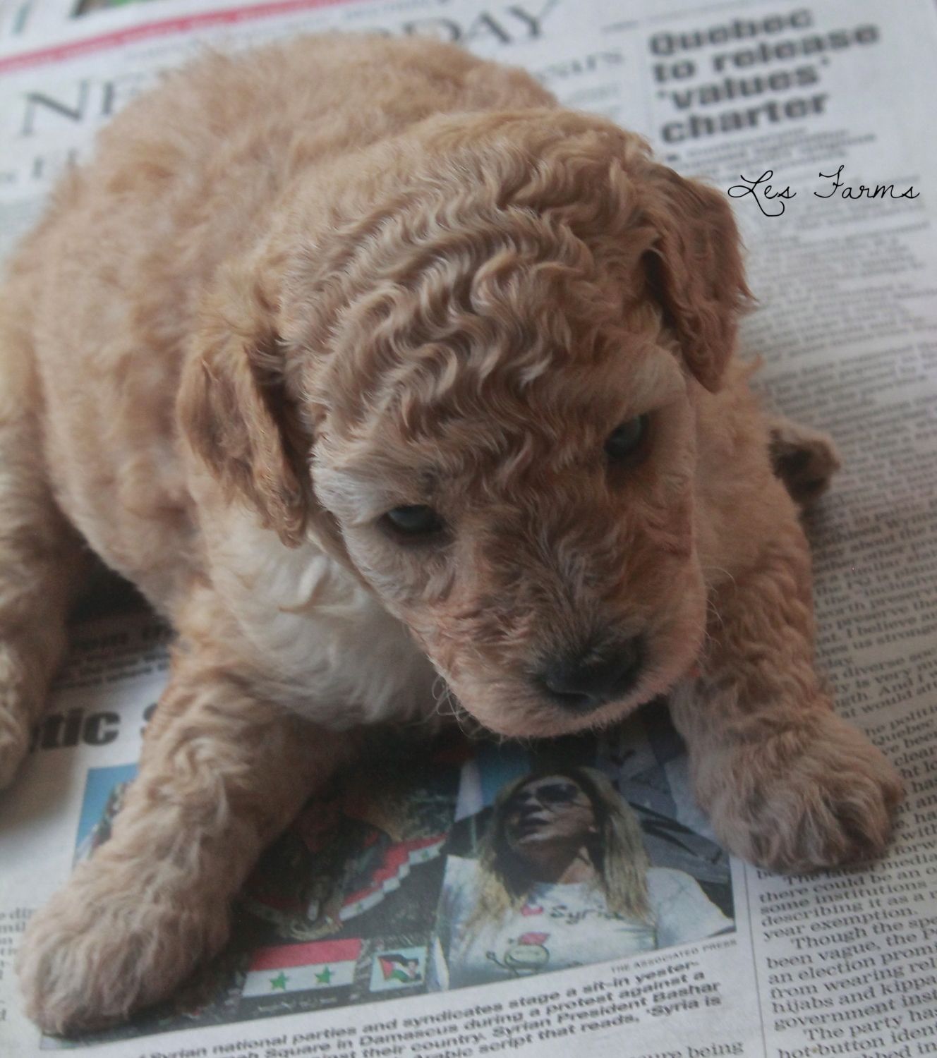 I didn't get a puppy. Chloe my miniature poodle has a litter of seven. I am keeping one of them :) Rosie.