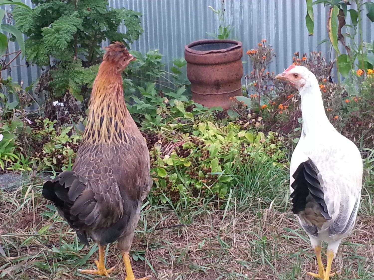 this guy, who knows what he is, is my second choice rooster. am thinking I'll try to keep two. See edie, the black pullet in the back ground?