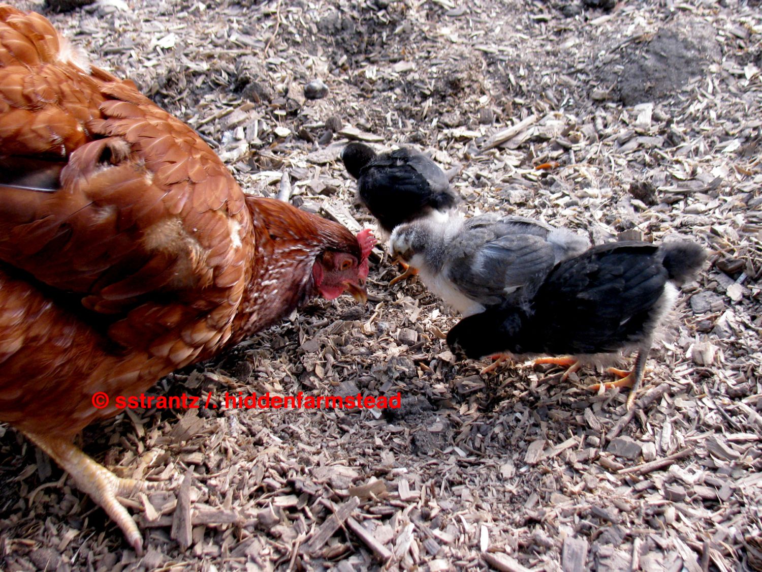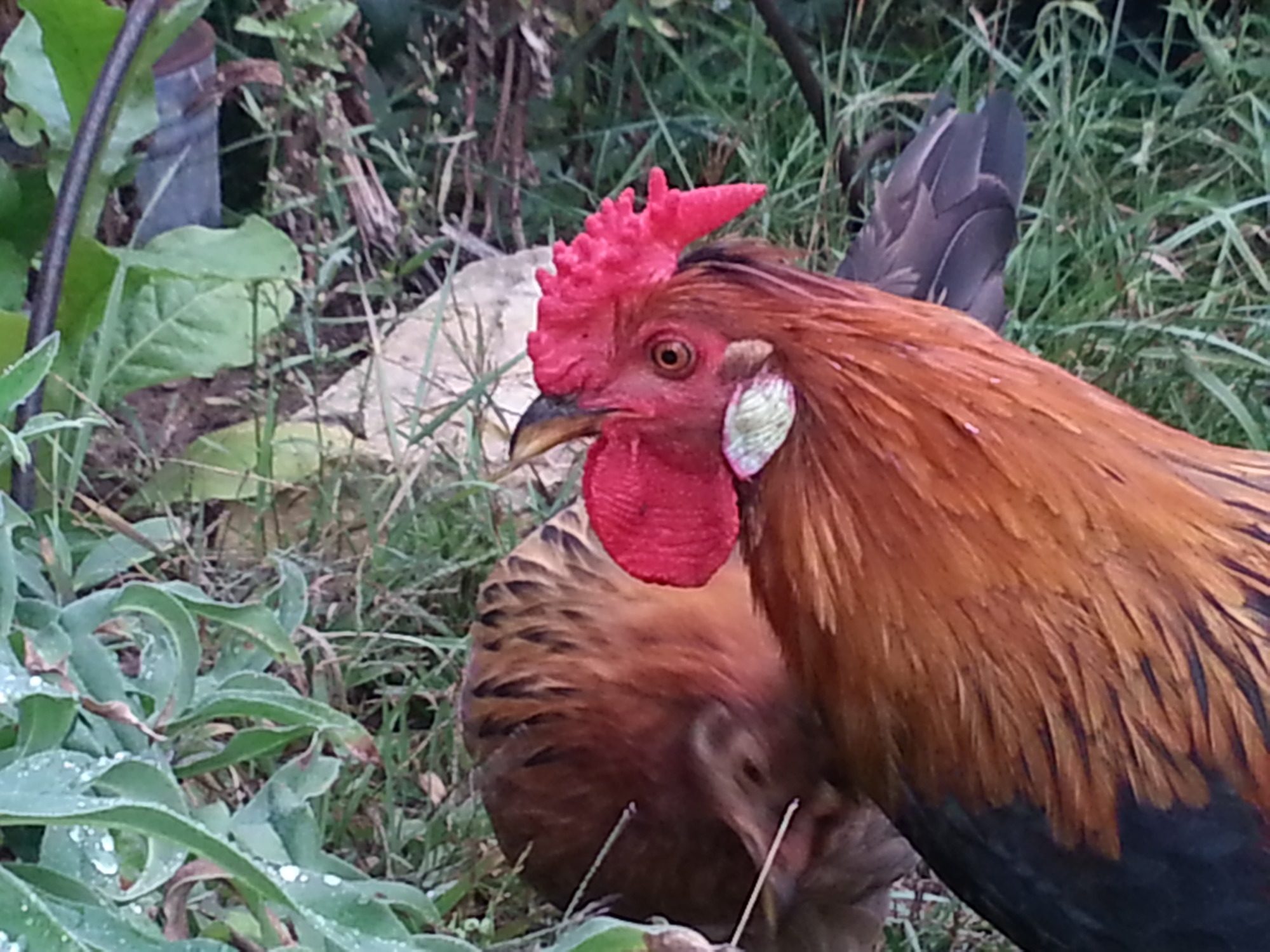 Buster, my main rooster, chases Edie, not to mate but to harass her. Buster otherwise has all the admirable traits of dancing, calling the girls to treats, keeping an eye out on the sky.