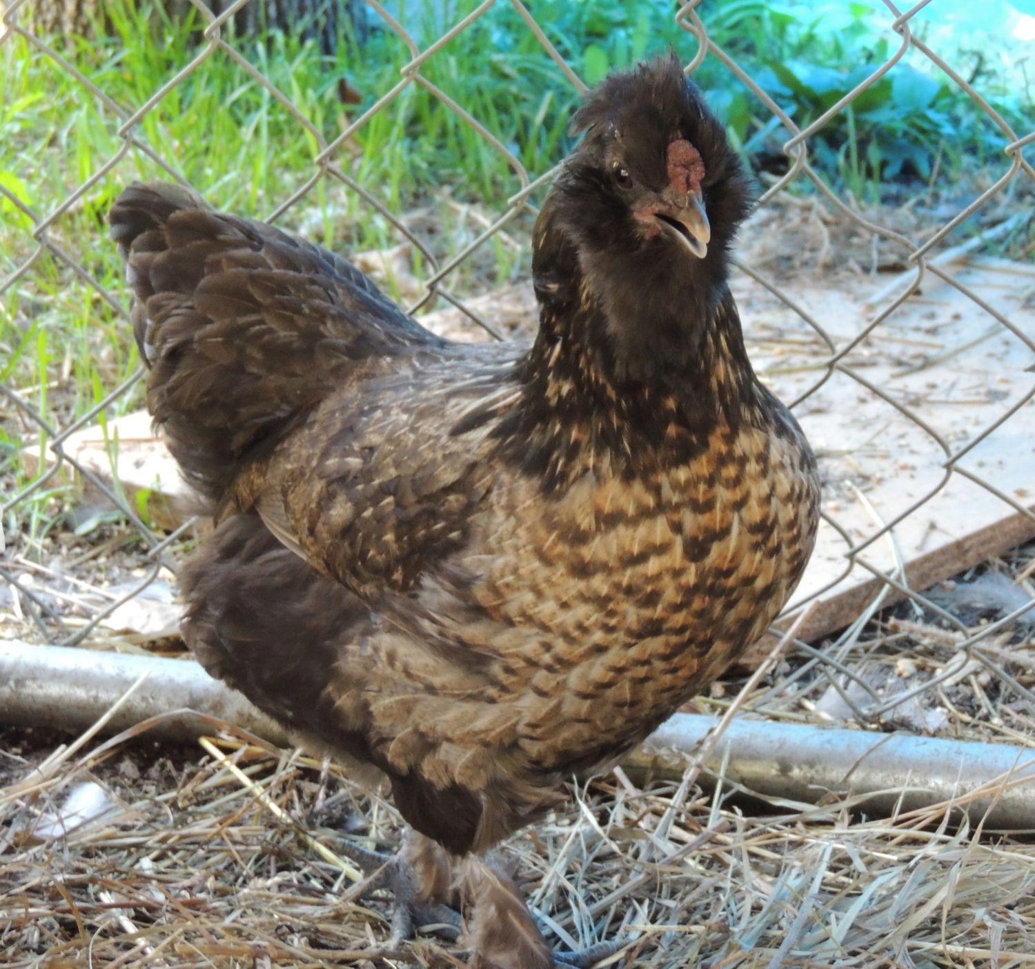 And here she is last week. Its no longer visible. She is the youngest pullet but as big as the old girls. Not laying even tho she has been red for weeks. She is still finishing her juvie moult but she is all fluff when you pick her up.