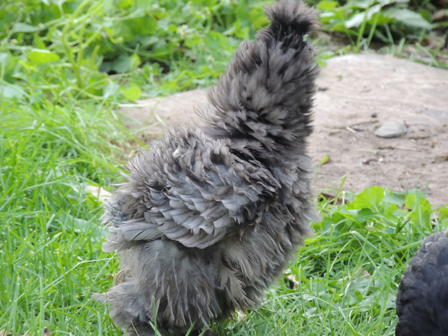 I think the same thing about animals. I love mine so much and it's so hard to let them go but there are so many out there that need homes. Amazingly, Cecilia is doing great. She's a little more compact than she was but her feathers are growing back. Her babies are much larger than she. I don't know how old they are supposed to be to separate babies from Mom but her babies are BCM, not silkie/sizzle like herself. Sorry about the blurry 2nd pic.