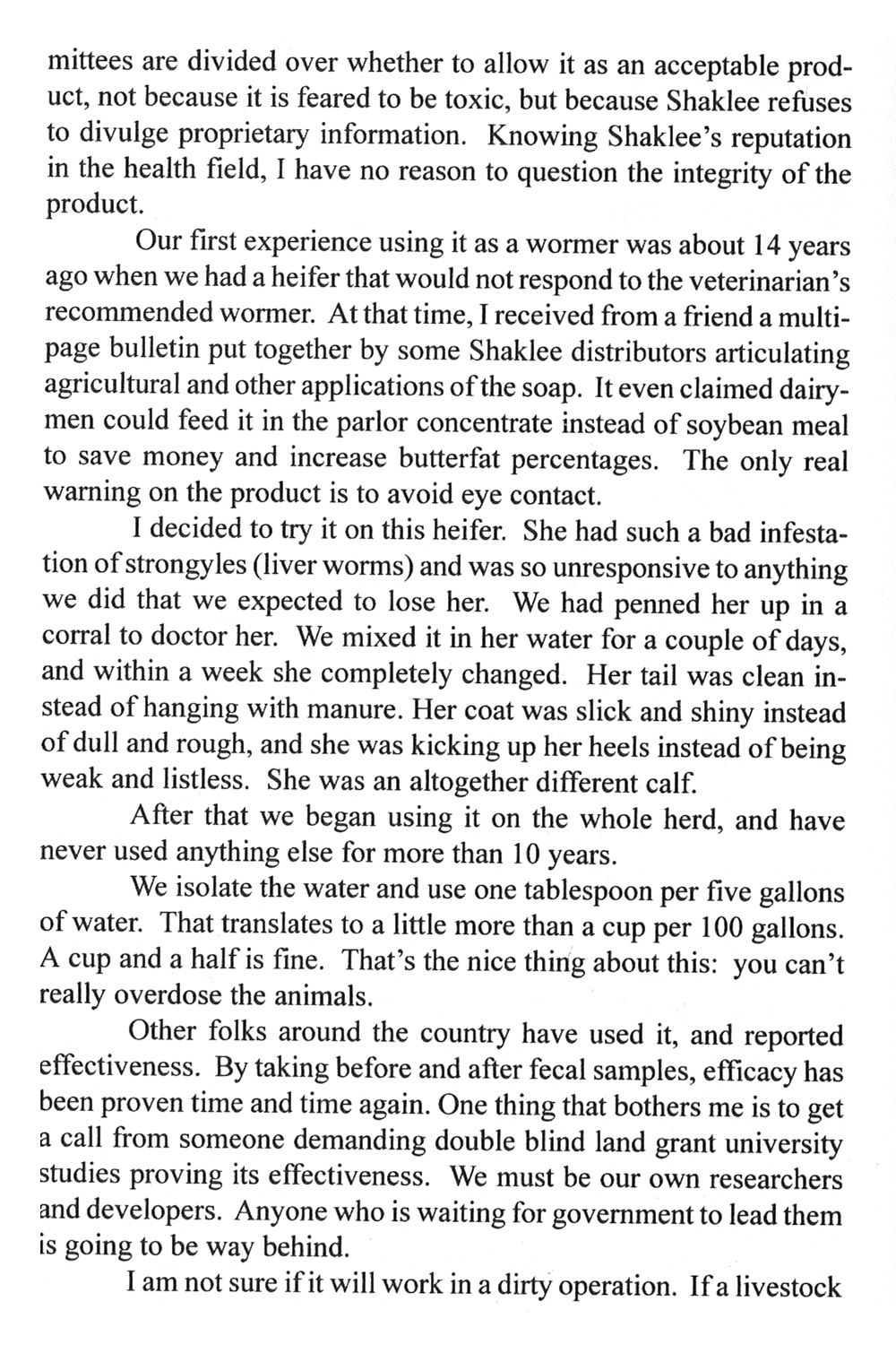 Not all soap works, but for sure the Shaklee's basic H soap can be used to deworm and should be much easier on the system than the chemical wormers. I had first read about it in Joel Salatin's books. Cattlemen use it quite frequently and I believe it is still approved for use on organic farms too.