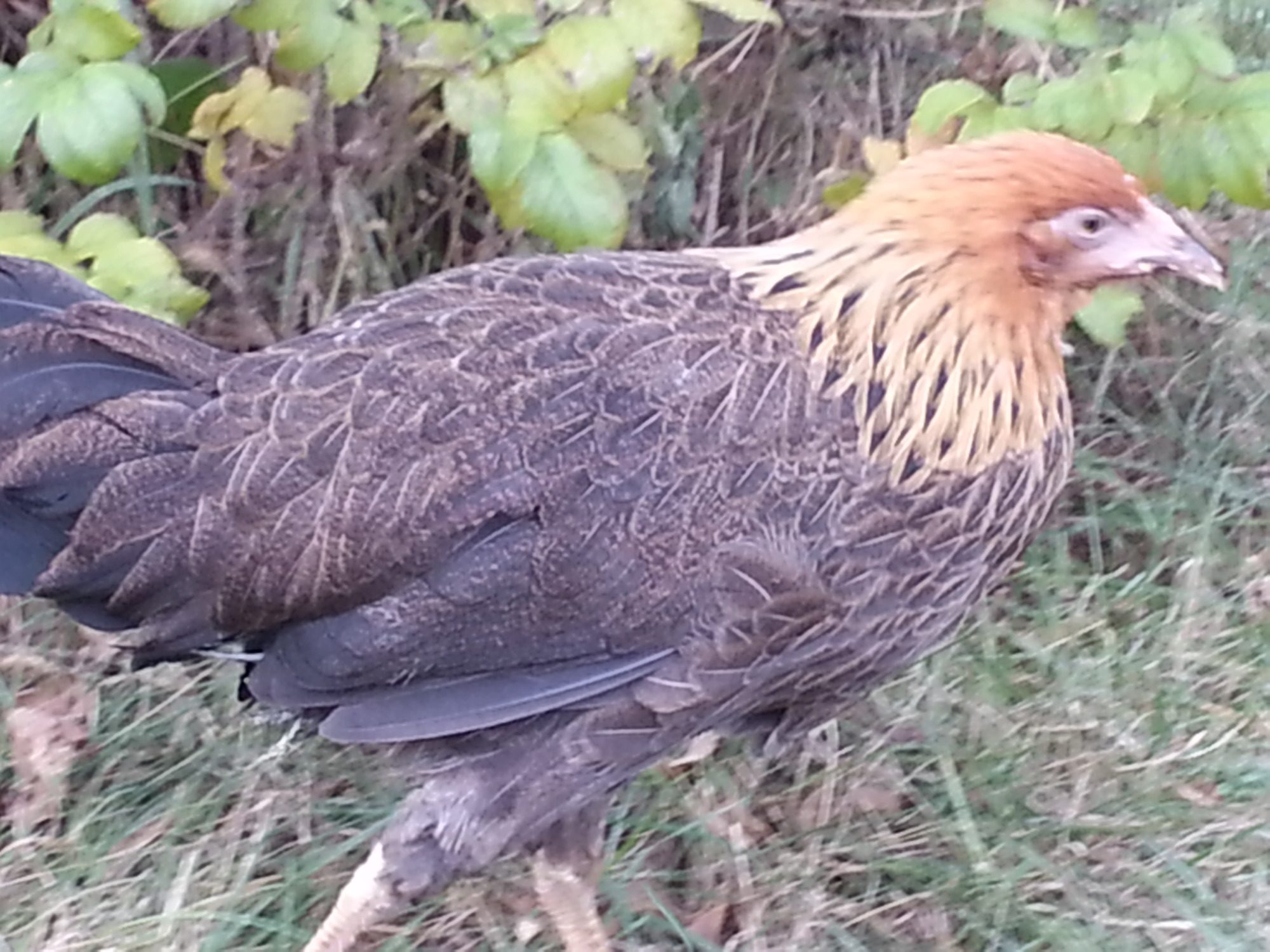 I brought her outside to temporarily join the flock while they were grazing, and there was absolutely no reaction from the flock to her. I've had hens separated for just a day that were viewed as strangers, so this is a relief, too. She grazed for a bit, and then went into a rosebush and closed her eyes, so I scooped her up and brought her back in. She walked into the kennel, sank down, and started to doze. She is very weak, and I don't know how long it will take her to recover. eating well, but I am thinking the worm overload is severe.