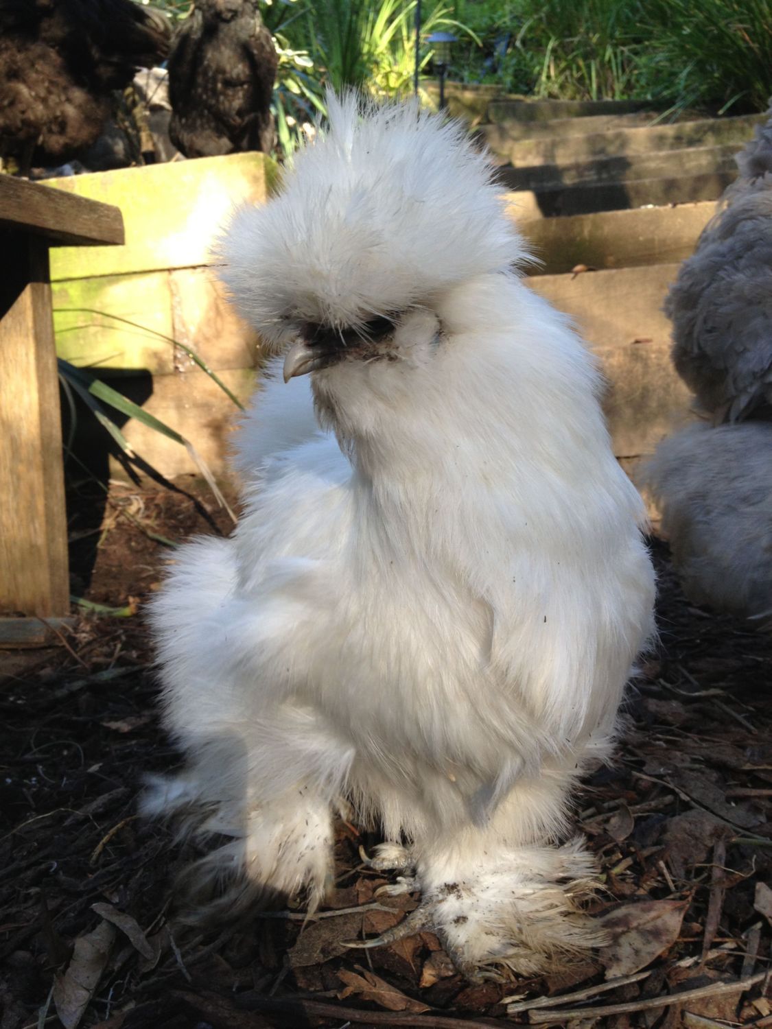 My mamas have their babies roosting now. I find it adorable how they continue to mother even though their kids are all grown up. Tina is like that still. She hatched 12 late July or early August.. I can't remember exactly.. but they are all still hanging out with her, and Phoenix is with them as well as they forage through the woods. They go the furthest up around the front of our house. It's adorable.Well, it looks like tonight may be the beginning of the end for mamma and chicks. I went out to be sure everyone got in tonight and mom and one kiddo were on the roost. One of the others was in one of the nest boxes and the other sibling was on the perch in front of that nest box. It was dark. I moved them both to the roost next to mamma, but not sure it that was a good idea or not. Hope they don't get disoriented and fall off!