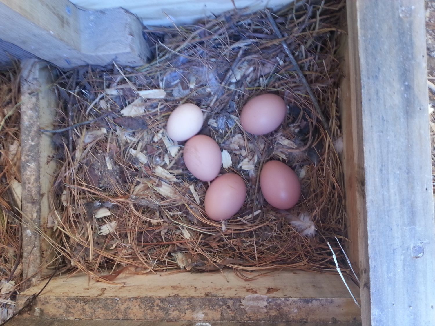 Here are 4 comet eggs, and the top left is the Bantam Cochin.