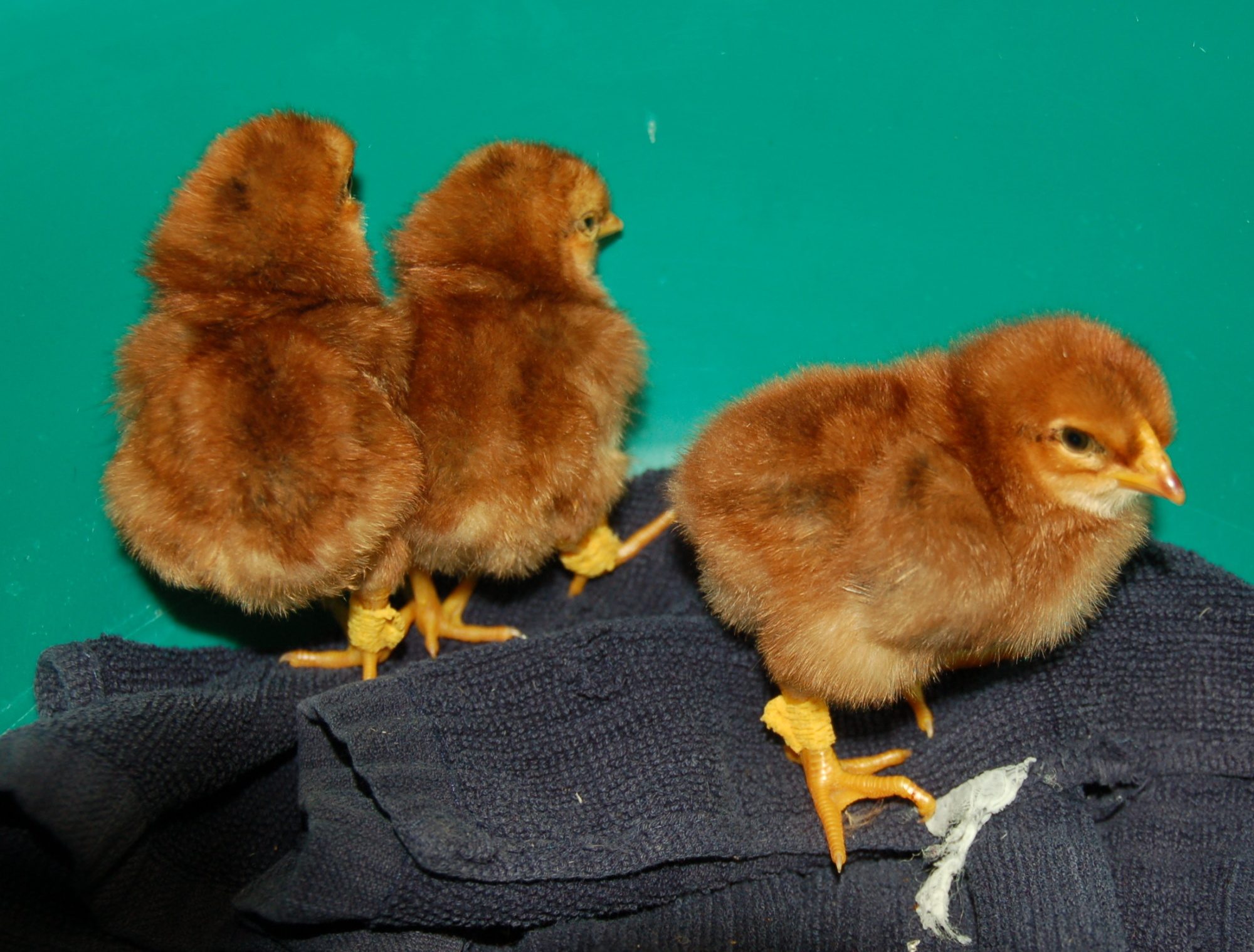 Yes and no... I have suspicions about the F1 generation so they have been marked and categorized into groups. I suspect the group above are all pullets. True Rhodebar males will have a head spot. Because these chicks in the F1 generation carry one wheaten gene and one wildtype (e+eWh), they are not accurately marked as they would be for guaranteed autosexing. (Not to mention barring genes required, etc - But I won't go into that). But ultimately they will be autosexed. I have six groups I have divided them into based on down color and markings. Here is another group. .. I suspect this group is male.