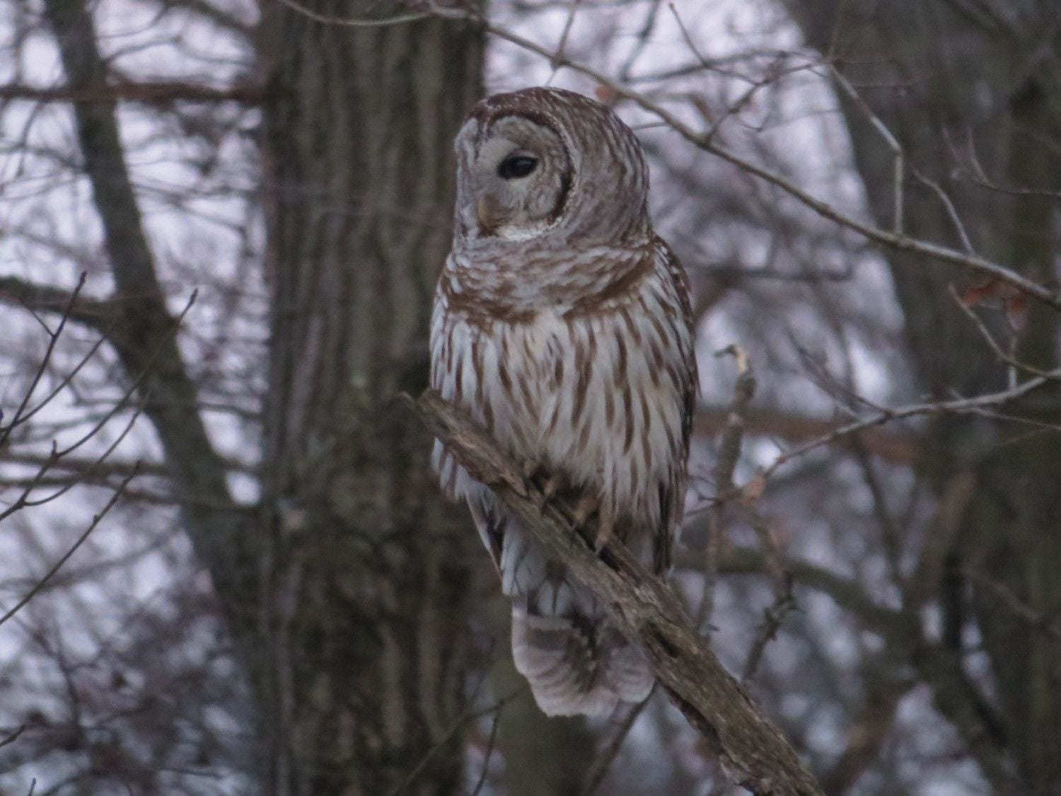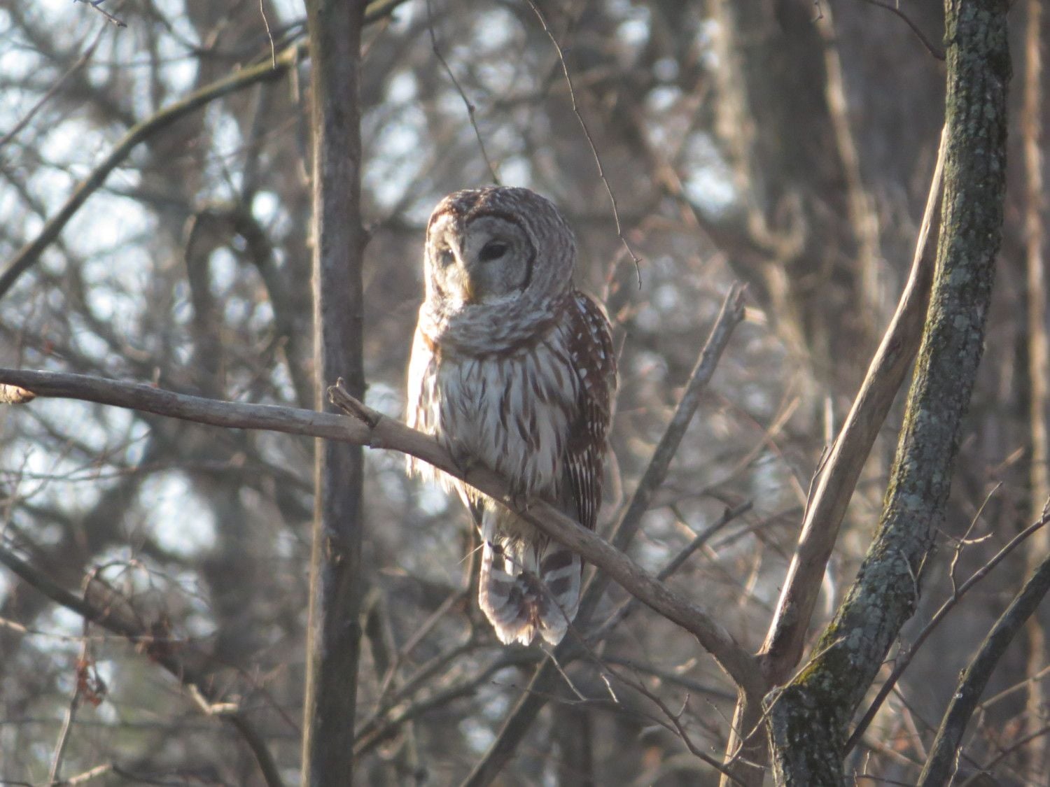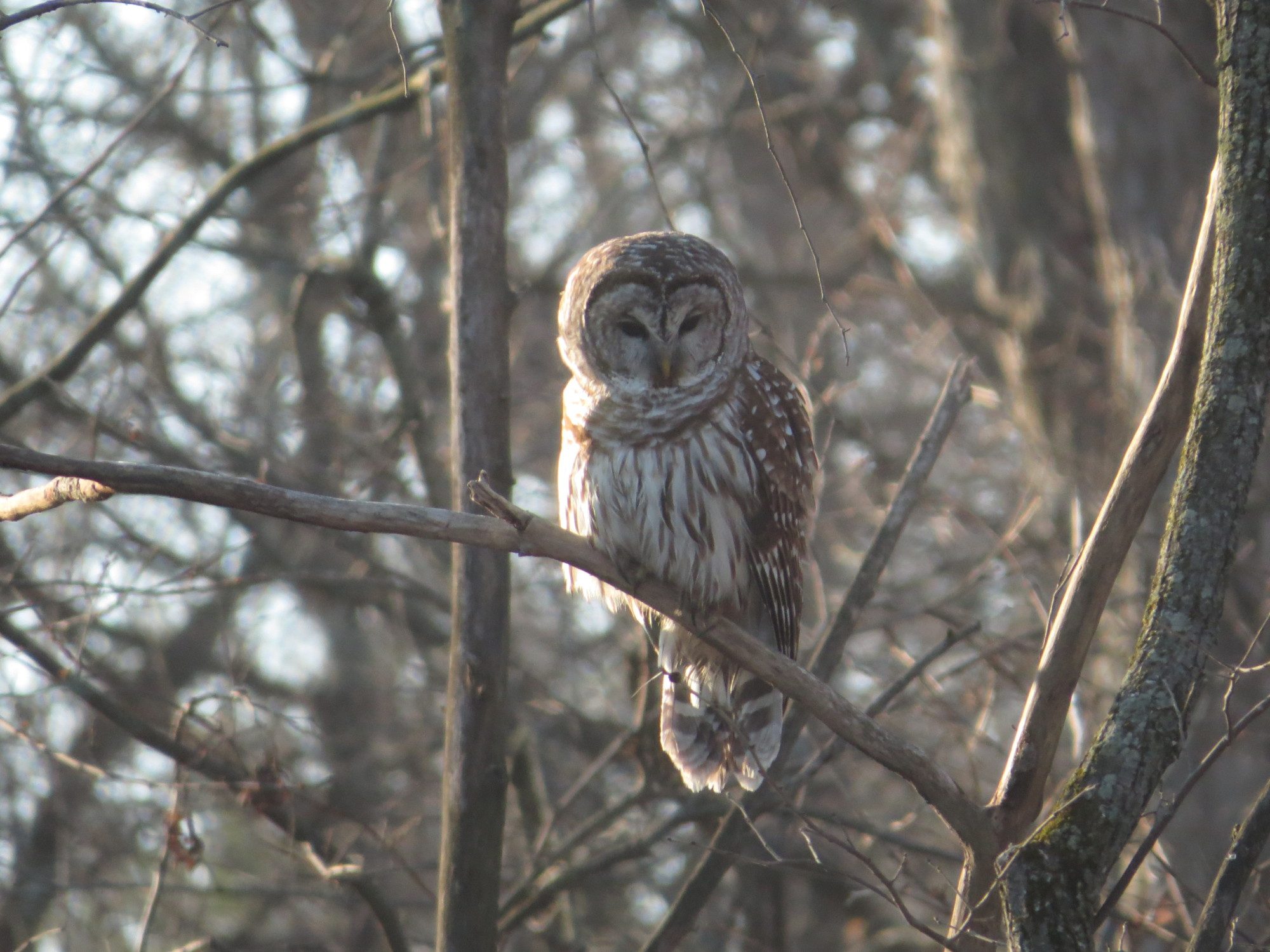 Maybe the owls are around because you have the hawks around. So if the owls scare the hawks away, and the chickens are locked inside at night...that might just be a win-win situation.