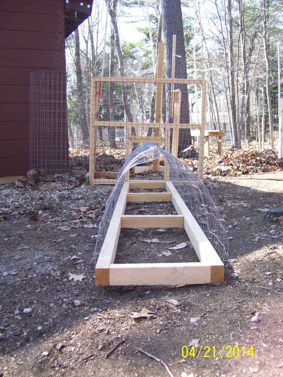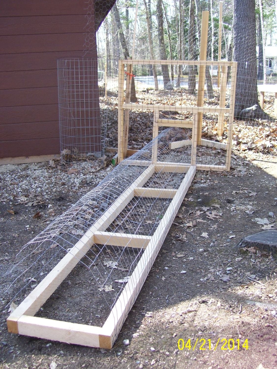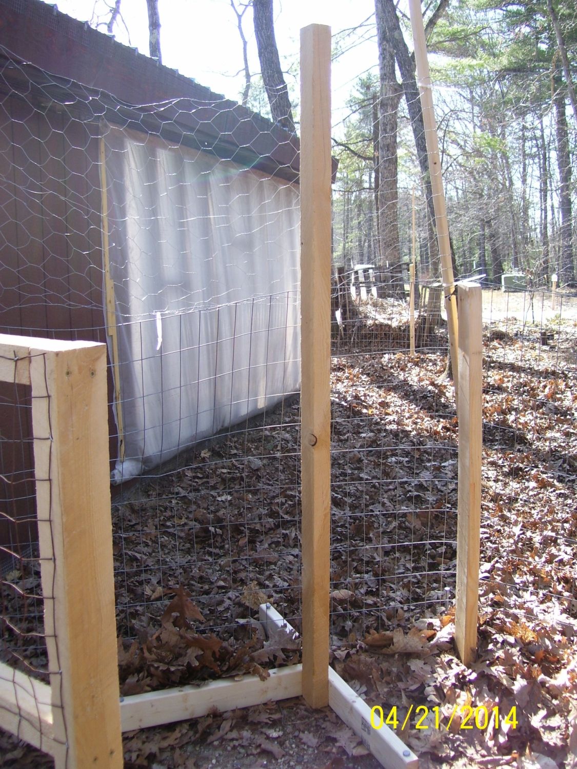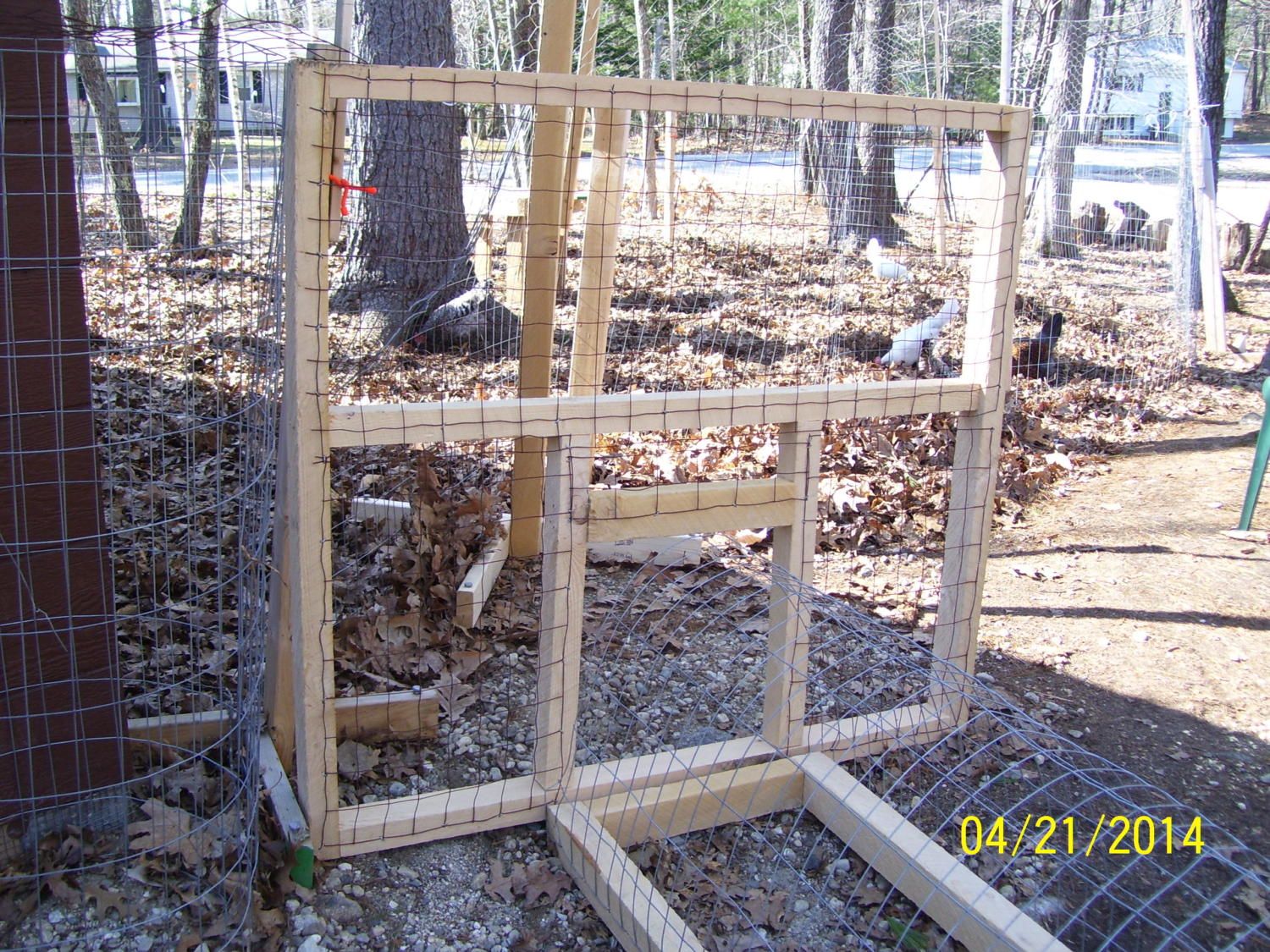 Love hemlock. Smells like butterscotch to me. It can split in my weather though. Your chicken tunnel looks great.I started my chicken tunnel project, today. The gate (from coop/run to tunnel) the tunnel and a 6-ft portable fence post were just ideas in my head until I tried each one, today. They all worked!! I'm using 2"x3" rough cut hemlock for everything. It weathers very well. The new "portable paddock" will be 6 feet high--4 feet of 2"x4" welded wire fencing and another 2 feet of chicken wire--to keep them from flying out. I wasn't sure the 6 foot post would be as stable as the 4-ft ones, but with longer "feet" on them, they stand up really well. The tunnels will be 8 or 10 feet long, with the welded wire fencing arched over the frame and latched together with "locking" hook & eye latches and twist ties. The gates will be hinged to the coop and have a closeable "door" the same size as the tunnel. The tunnels will take them across the driveway to the front yard or back yard (each enclosed in a portable paddock.) Town ordinance requires chickens be behind fencing all the time. I can't afford to fence my whole yard, but this is affordable and allows them access to greens & bugs, safely. (I posted this on the DIY thread, too.![]()