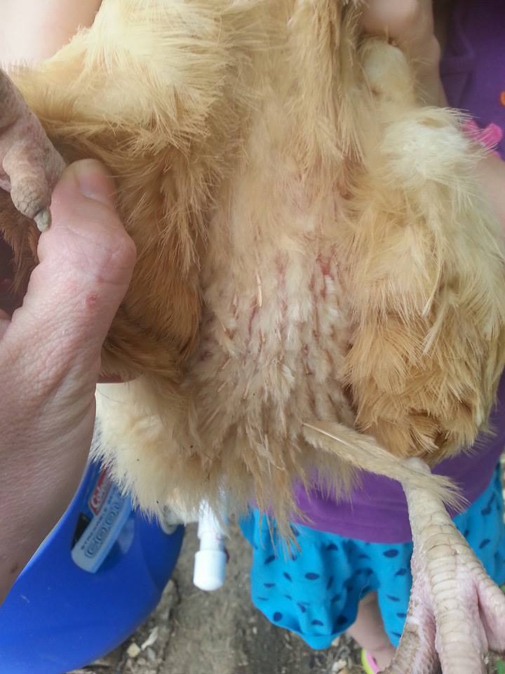 Question for you. First, a picture. This is the underside of my hen, back between her legs. She has eaten away all the feathers underneath. They are all clipped off, it seems. From the back, her feathers look wet (on the underside, not by her bottom). I've had one hen not laying daily, for a few weeks. She is a hatchery buff orp, a year old in March. I was able to pick her up today. When I turned her over, I saw the feathers are removed, and this area is very red and hot to the touch and swollen. Her feet are a bit puffy and red as well. You can see right between her toes is red, and it's red all up and down the outside of her legs. I don't know that she is the one not laying, but I'm guessing. I had a leathery egg a week or so ago. I actually attributed it to another hen, but it may have been hers. I guess this is egg peritonisis? Is there an easy cure? I won't use drugs, but I hate to lose one so young. She is otherwise acting fine- ranging, eating, full crop. What's your advice? Watch and wait? Cull now? If it is peritonisis, is the meat safe to eat or is she a loss? I haven't noticed any scratching on the roosts, and she didn't seem to have any bugs on her to explain the feather loss. None of my other girls or boys look ragged at all.