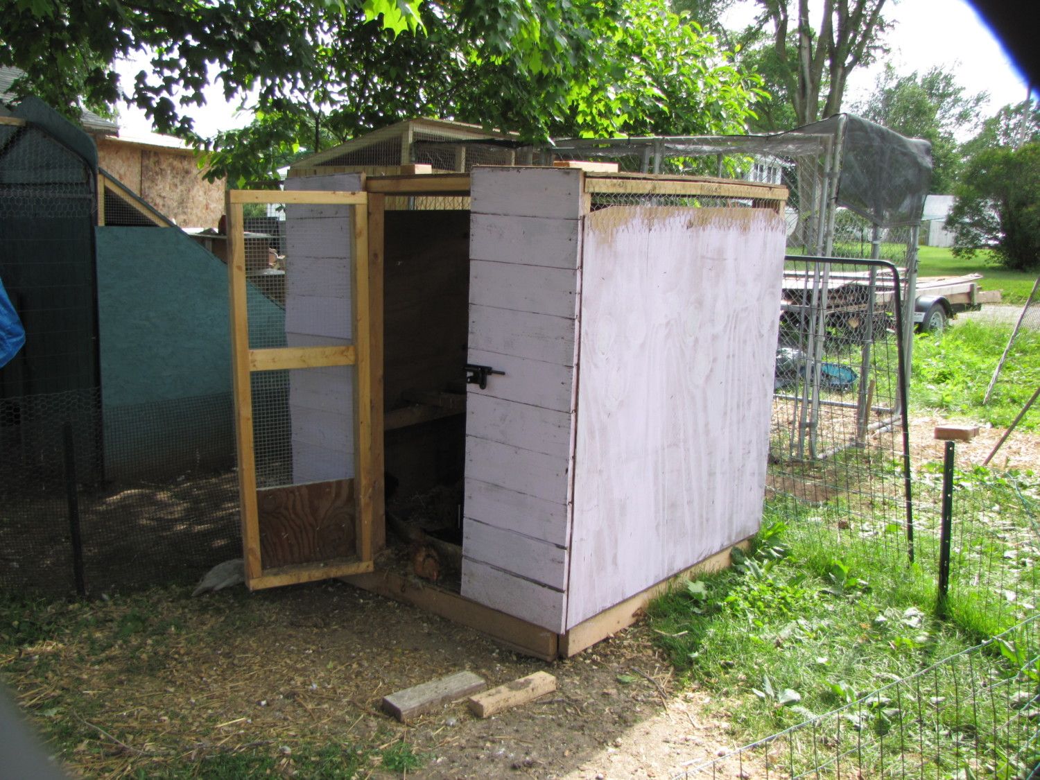 Here is the little 4x4x4 growout made on mothers day 100% recycled materials bought from a restore cost about $ 40 including the wire..no run yet just fenced in with short fence i lock them in at night.