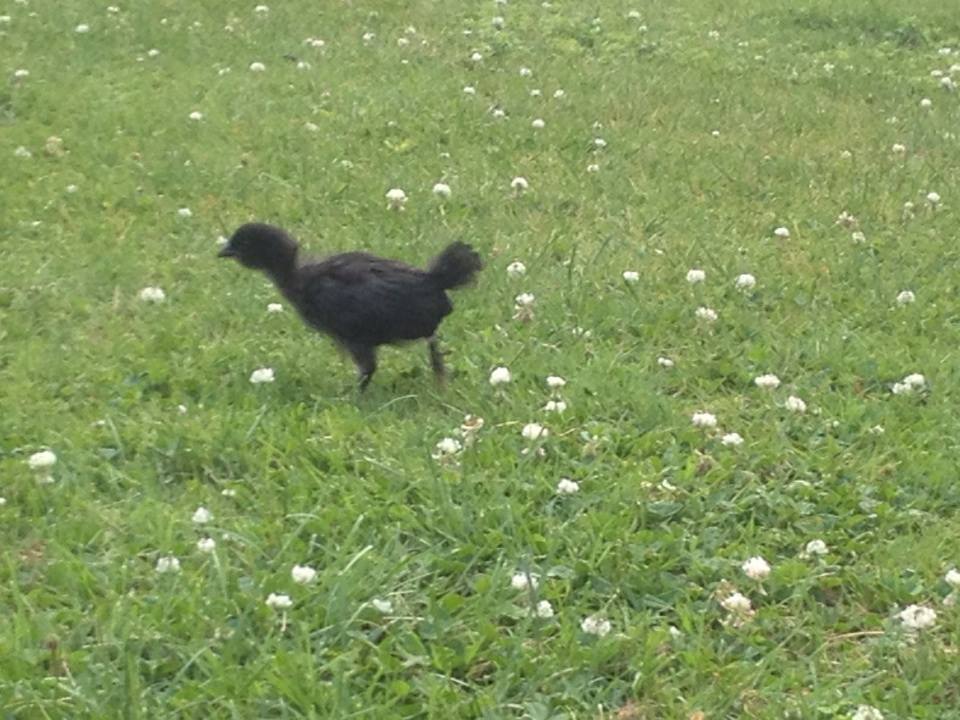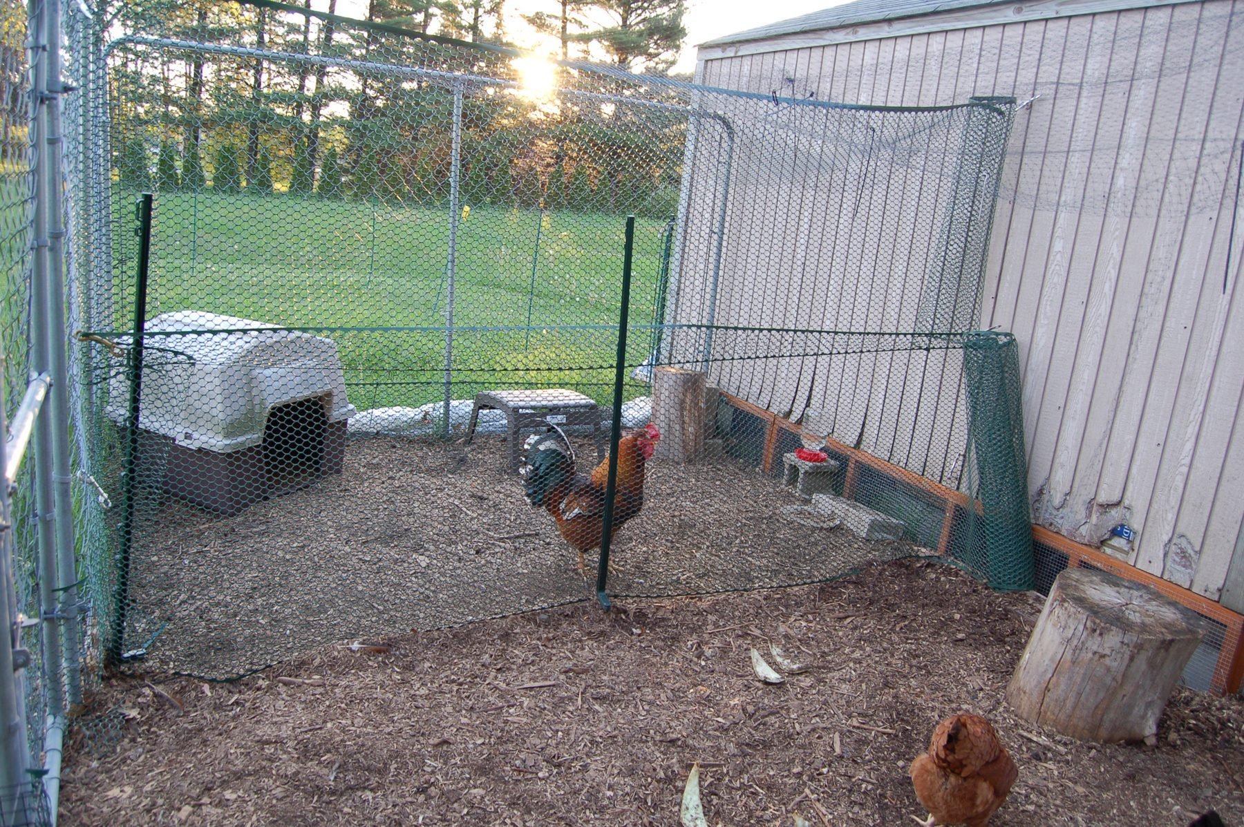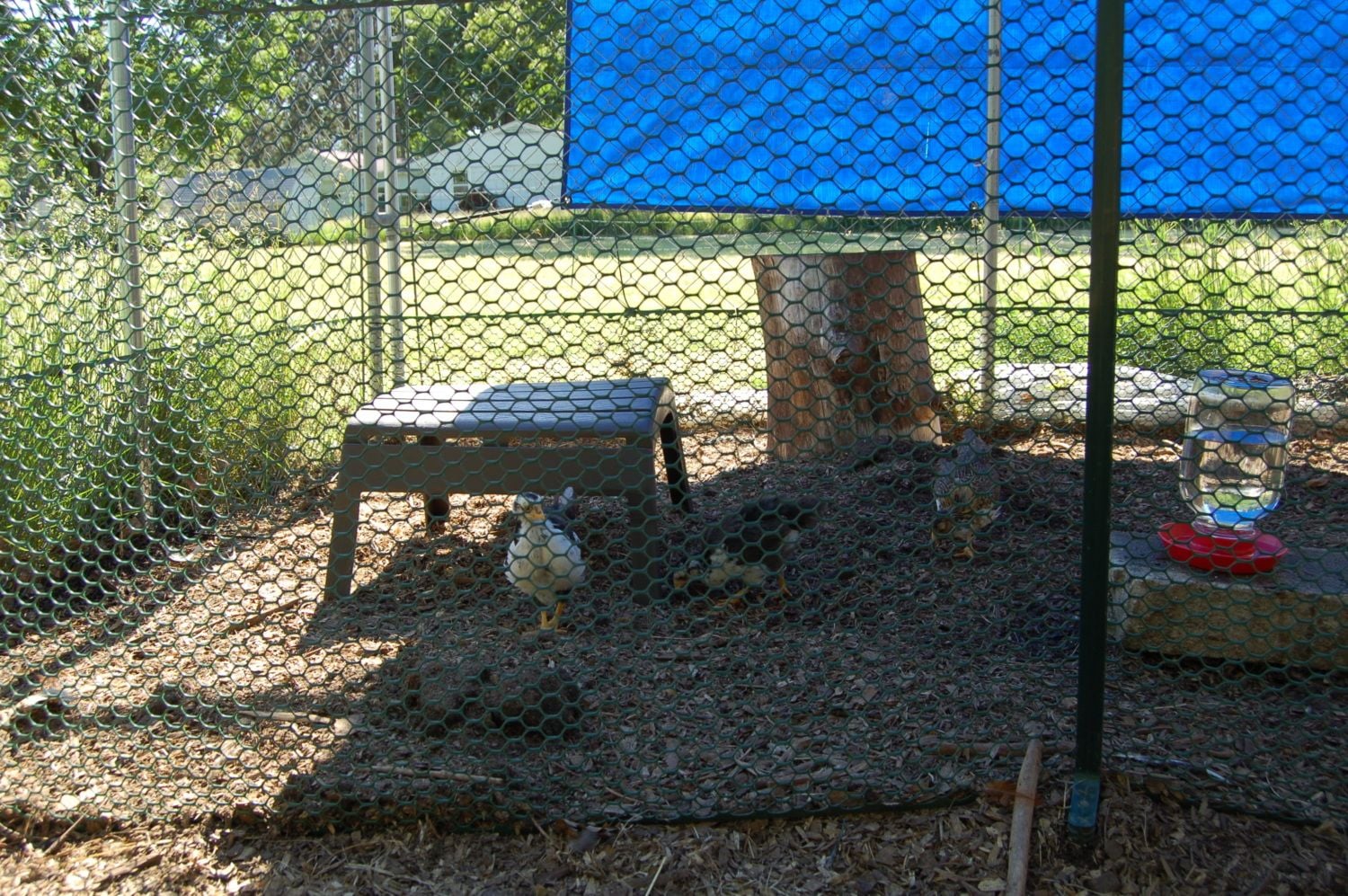 I think I pulled maybe 3 weeds from this area. It's the walkway to the coop. Where the shaving are not there are a ton of weeds. I used one whole bag for this area so it's pretty thick. Maybe 2-3 inches? Once I get a little extra $$ I'm going to buy a couple more bags for around the stones closer to the coop to keep weeds down & so it's not so muddy when it rains when going to the gate to the hens outdoor area