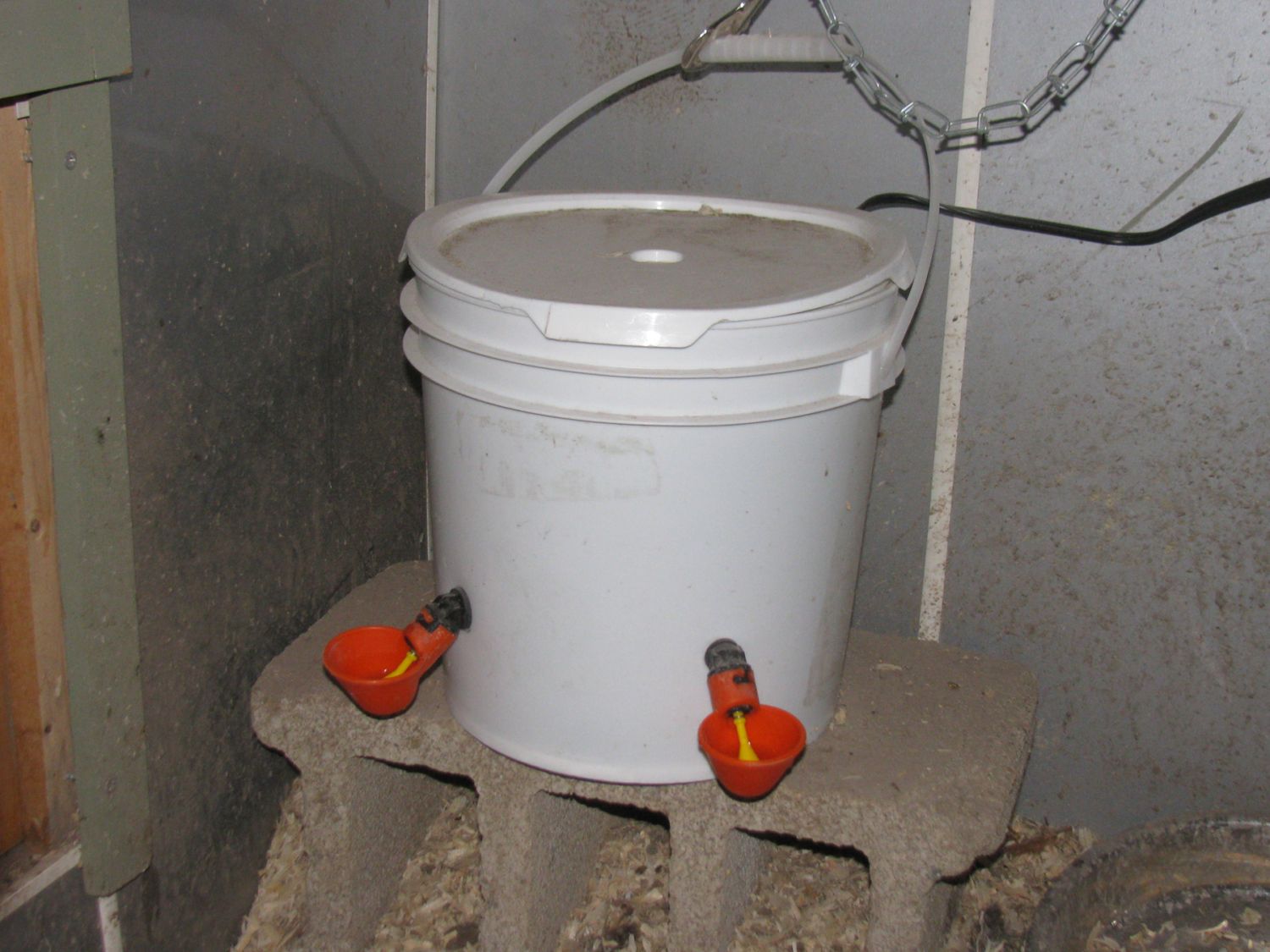 However, the little spring inside would have just enough moisture on it that it would freeze up and became very difficult for them to get any water to flow. The water stayed wonderfully warm in the bucket with the aquarium heater. I would plug it into a thermocube.