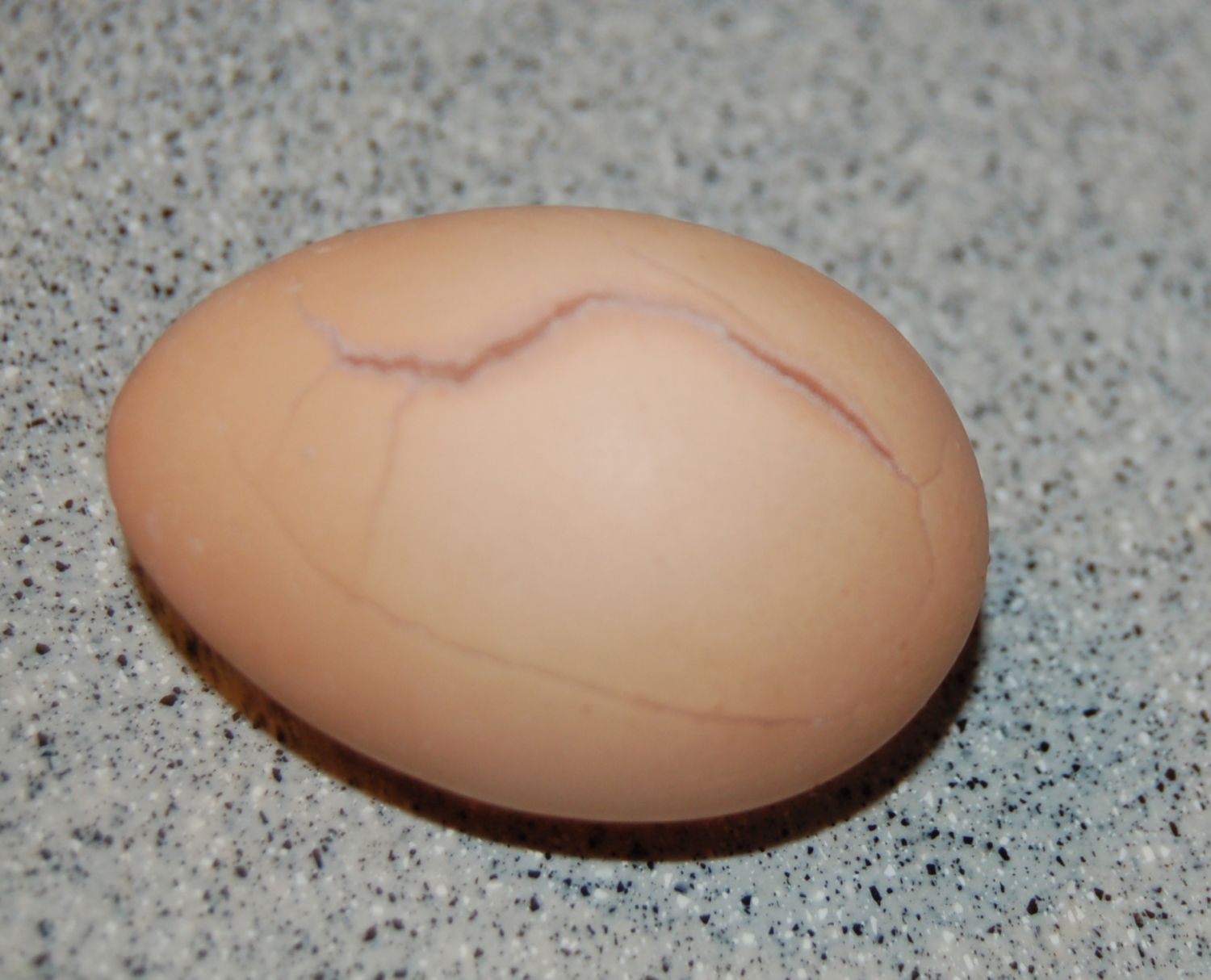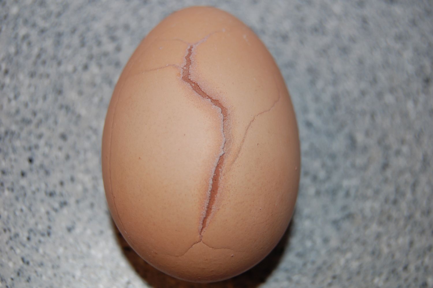 I had a "problem egg" today. It appears that it cracked inside the hen, and then it was repaired inside the hen before it was laid.