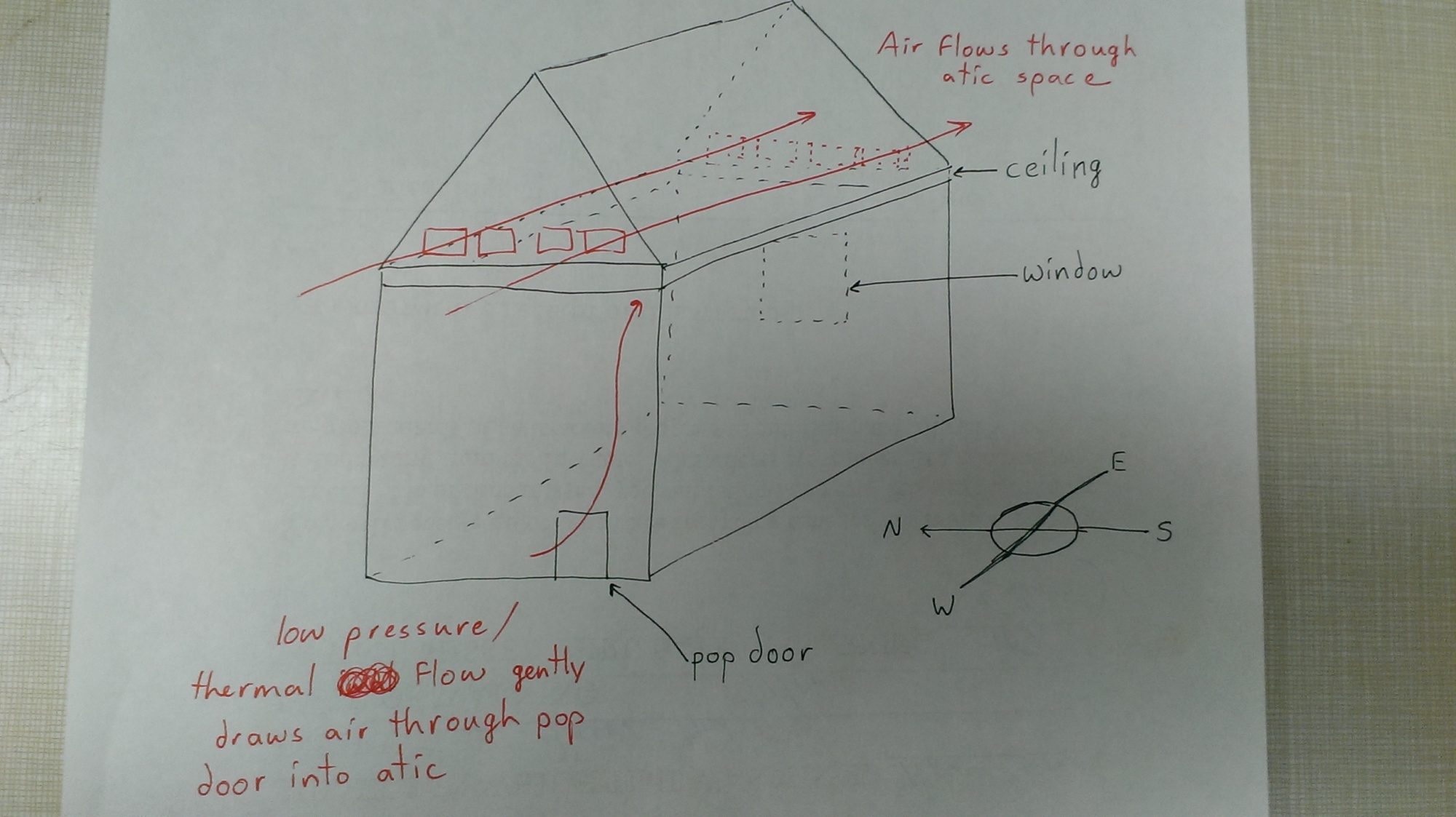 The coop has an "attic" space that's divided from the main space, like a ceiling. There's a ladder hole to get up into it. All of my vents are in the attic, on opposite sides of the coop from each other, so the wind can blow through. I could cut a lot more vents, and the draft would stay over everyone's head, in the separated space. Does that make any sense? I feel like I need to draw a picture.