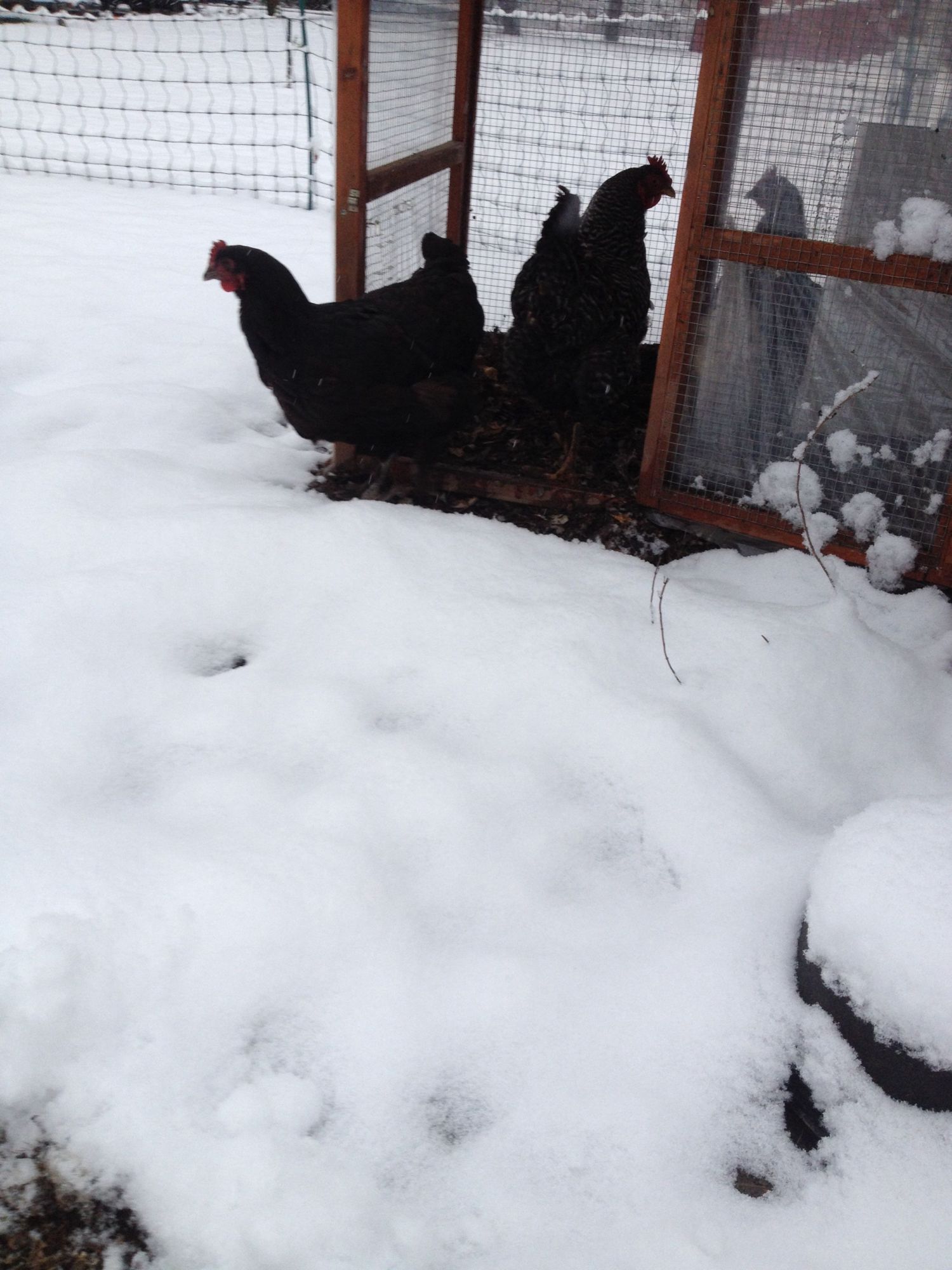 Big girls are not impressed with the first snow. To bad their food on other side of snow where I shoveled![]()