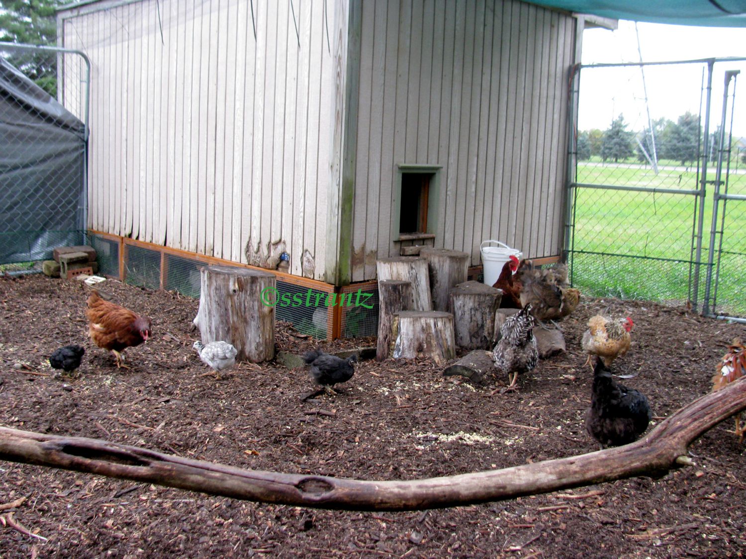 WOW, Leahs Mom; Thanks soooo much. I can't believe how much like yours my set up is! I have 2 chain-link runs for 2 breeds with another to come in June. They are lined around the base with 24" of chicken wire. The top is covered with chicken wire as I can't chance either predators getting in or the chickens flying out. Part of the runs have tarps over the top and sides for wind/weather blockage. The coop is being built in between the two runs and the third one will go in front. I love the use of stumps for the coop entrance. Will hunt the local woods for them as well as some branches for them th climb/play on