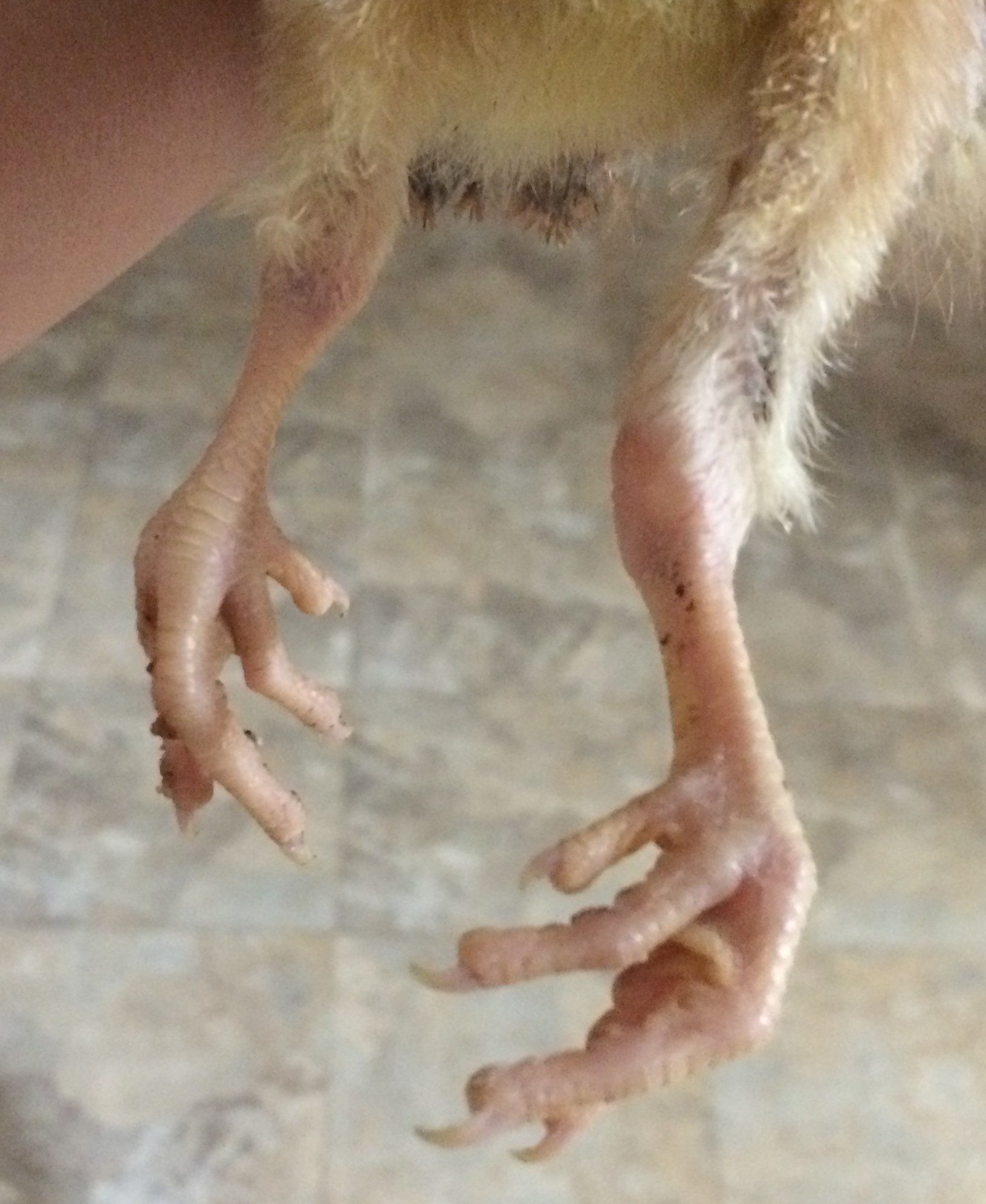 I need a little help. I have 3 week old chicks in the brooder. Everyone has been fine, then I spotted this one tonight. He's walking on the tops of his feet. I have another starting to do the same thing. 2 things were done differently. I use sand in the brooder with puppy pads over it until they start shredding them, then just sand. I had to remove most of the sand last night due to mold (that's unusual, but has happened before). So the puppy pads have nothing under them. The other thing, I ran out of game bird starter (poults in the brooder with chicks so I always use game bird) so today I fed broiler grower. They are back on game bird now. Any ideas on what could be causing it? Can it be reversed or should I cull the 2 now? TIA.