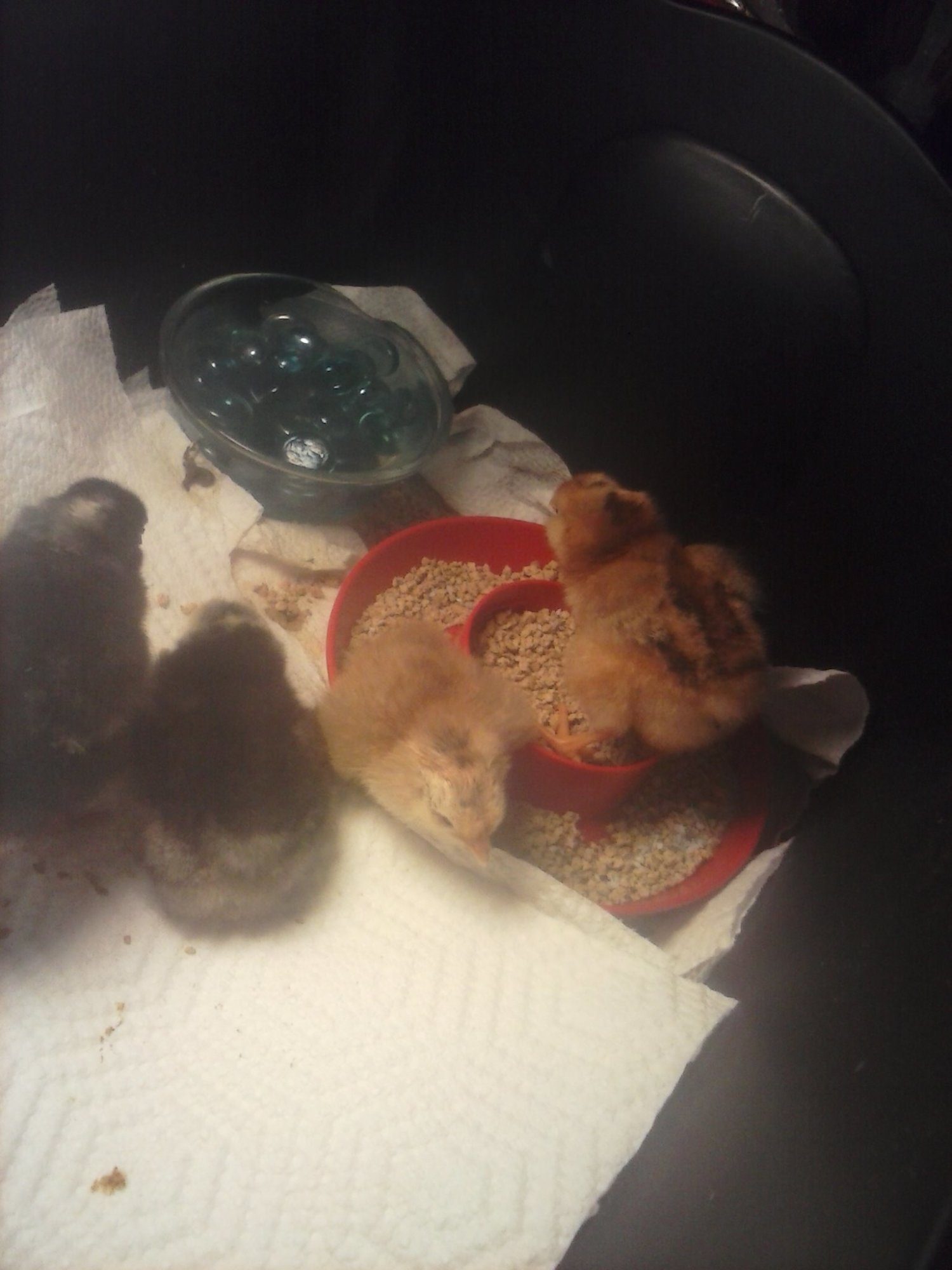 Normally, I have liver in the house because of the dogs, but we are having a problem with too high iron from our well water, so no liver for now. I don't feed medicated feed. As much as I didn't want to, I gave vitamins in the water. I'll need to cull one and maybe 2.