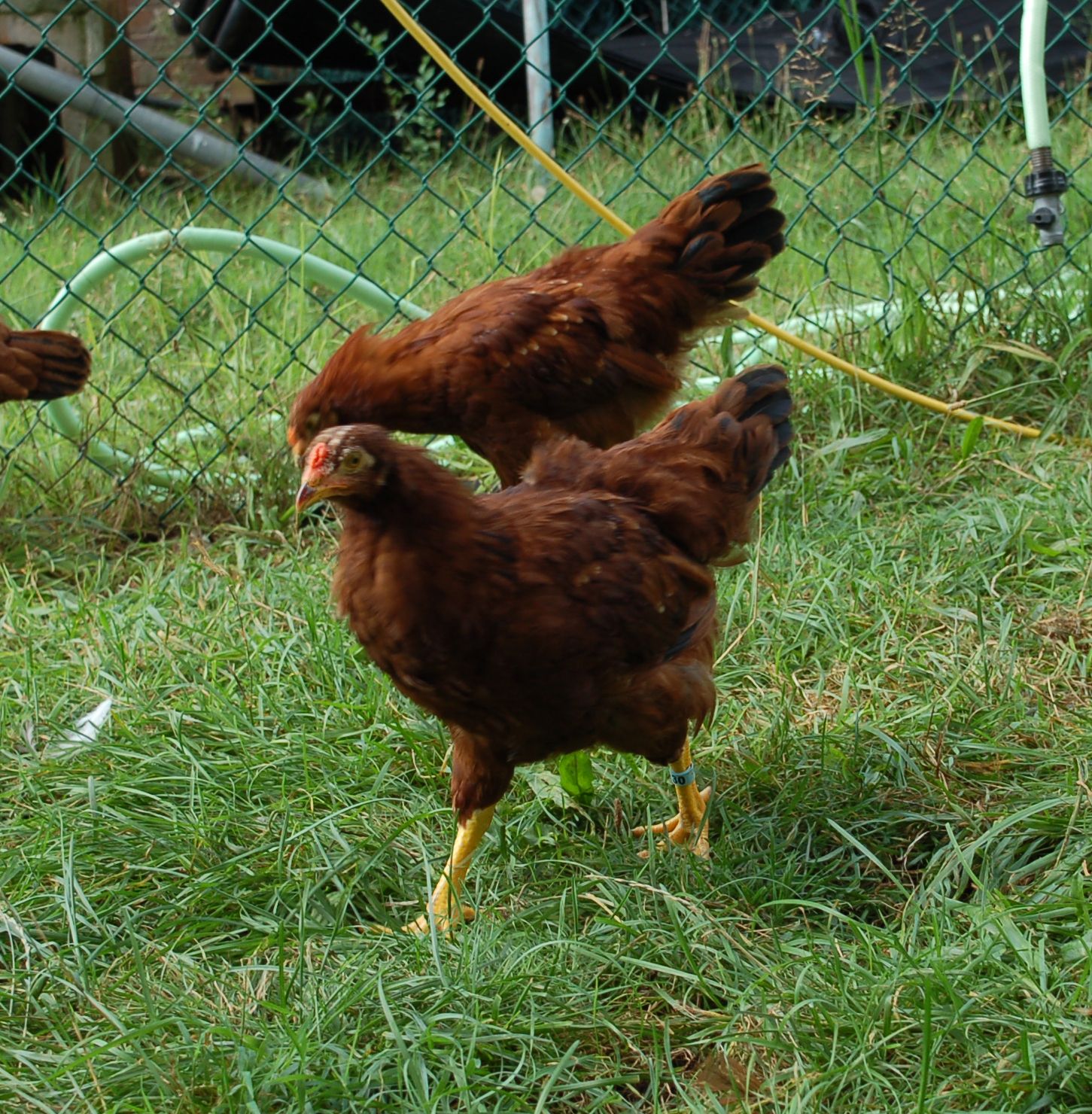 I kept the #2 SFH choice penned outside during the day on Monday, Tuesday and today. I didn't want any cockerels chasing females in the heat and causing heat stroke.