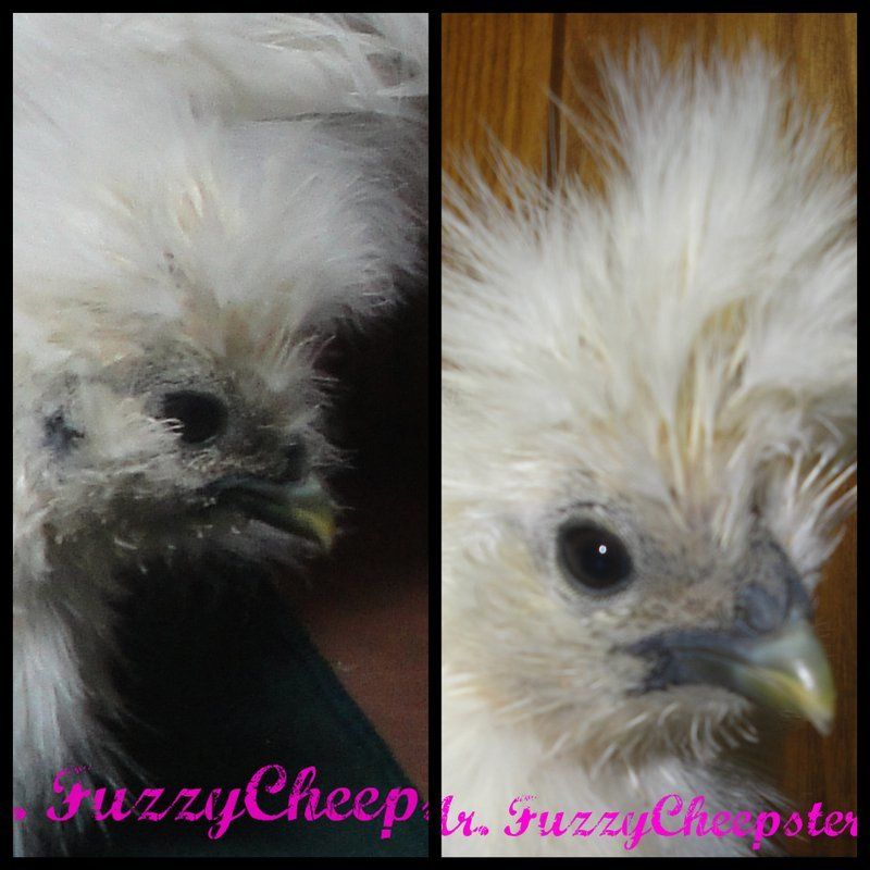 Mr. Fuzzy Cheepster. When I put the chicks back in the pen this guy went right at Mr. Wiggin. Mr. Wiggin still came out as alpha. Can you see the big eyes and hawk beak now?