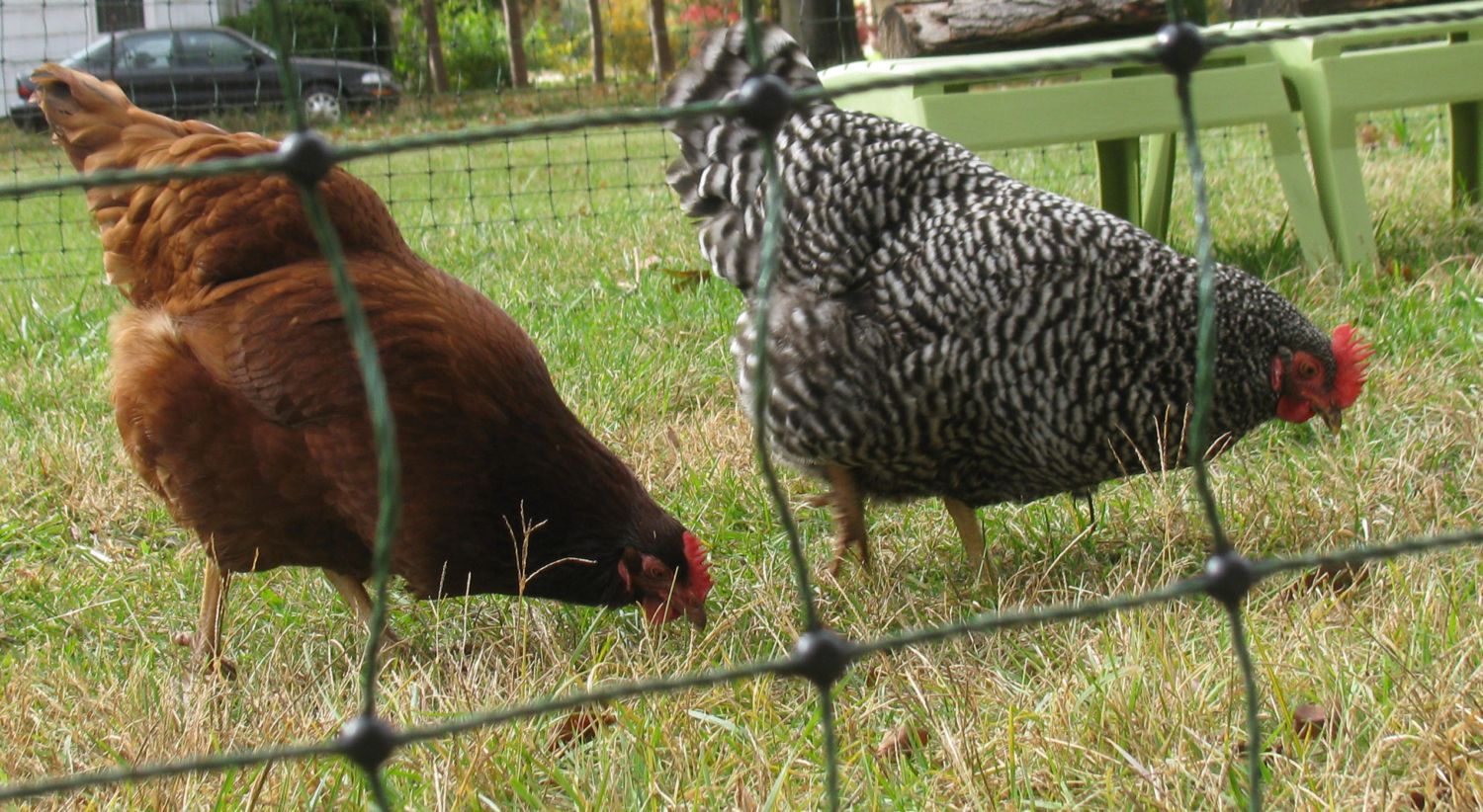 Here is what I have found: I found that 2 companies sell poultry fencing (be sure not to buy sheep fencing since the openings are wider.) Kencove.com looks cheaper when you first look, but Premier1supplies.com is actually taller and longer for the best price. I have bought both the regular poultry net that is 165 ft. with posts every 12t, and then later I bought their poultryplus net that is 100 ft with posts every 6 ft. The fencing is 42 inches high, and the chickens do not fly over it usually because they can't jump up on it like a regular fence and then go over it. I found I liked the 165 ft. length better because it was lighter weight to carry when you are setting it up, a better value, and you can buy extra electric fence posts at TSC to keep the midparts from drooping. Do not ever use it without a power supply because we have nearly lost a yorkie, a bloodhound, and 3 dumb cats who kept trying to go through it until we got it turned on. They get stuck in it and wrapped it around them, and we actually had to cut part of it to get the yorkie's head out.