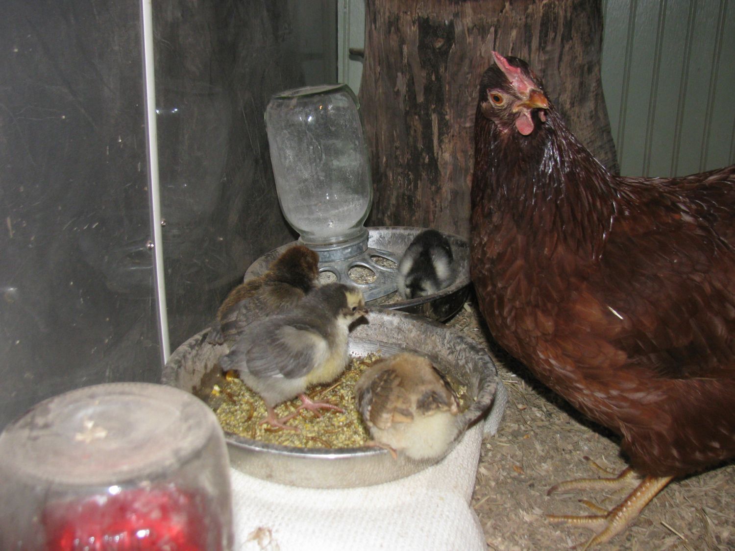 I've done both successfully. Putting day old chicks under the hen while she is in her nest at night works the best for me. Day old chicks out of the incubator will be young enough for her to bond to their chirping if her own chicks are the same age or it's close to 21 days and it is apparent all her eggs have hatched. Everybody wakes up in the morning as one big happy family. It's a problem if your trying to crowd too many chicks under a hen with a full nest of eggs. And with older chicks and this doesn't work so well. She won't recognize their voices and will usually fail to accept them. Timing is every thing. Night time is the best time to try.Broody question.....I've gone back and read about placing a different chicks eggs under a broody and sometimes they will accept it. ???? If you put day old baby chicks under her would she accept them or just eggs??