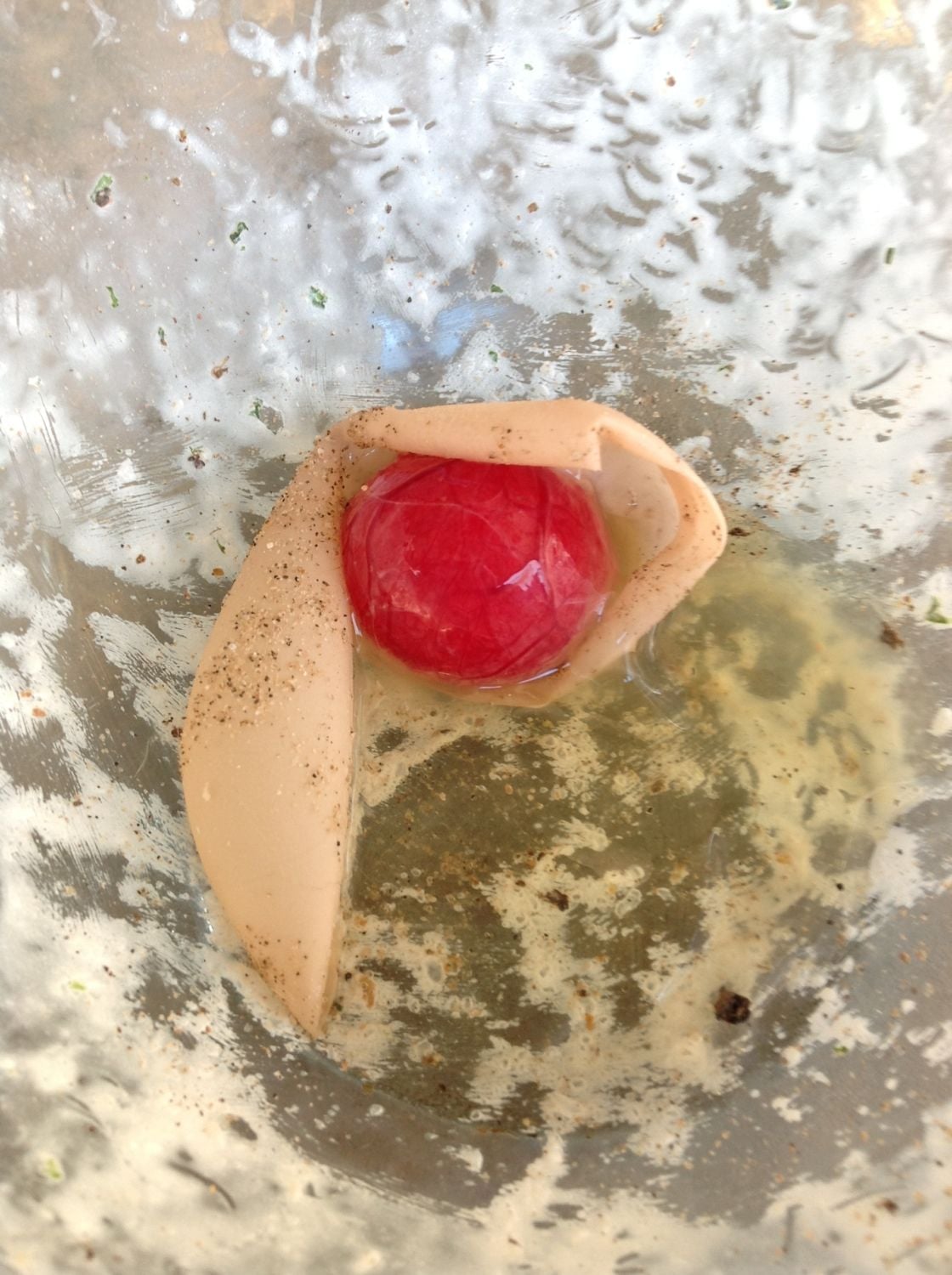 Hi everyone I have been following this thread and thought I would get your thoughts on an egg I found this morning. I have never seen anything like this in my 4 years of raising chickens. I thought I would see if anyone else has. I found this soft shelled egg under the roost this morning and I could tell it had something big and red inside of it. So I opened it up and it looks like the egg must have starting incubating inside my hen. It has been about 4-5 days since she laid an egg. What are some thoughts on this and do I need to be concerned that this could happen again if she goes days without laying an egg.